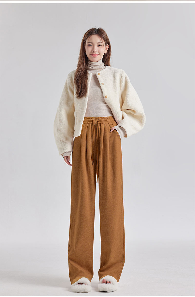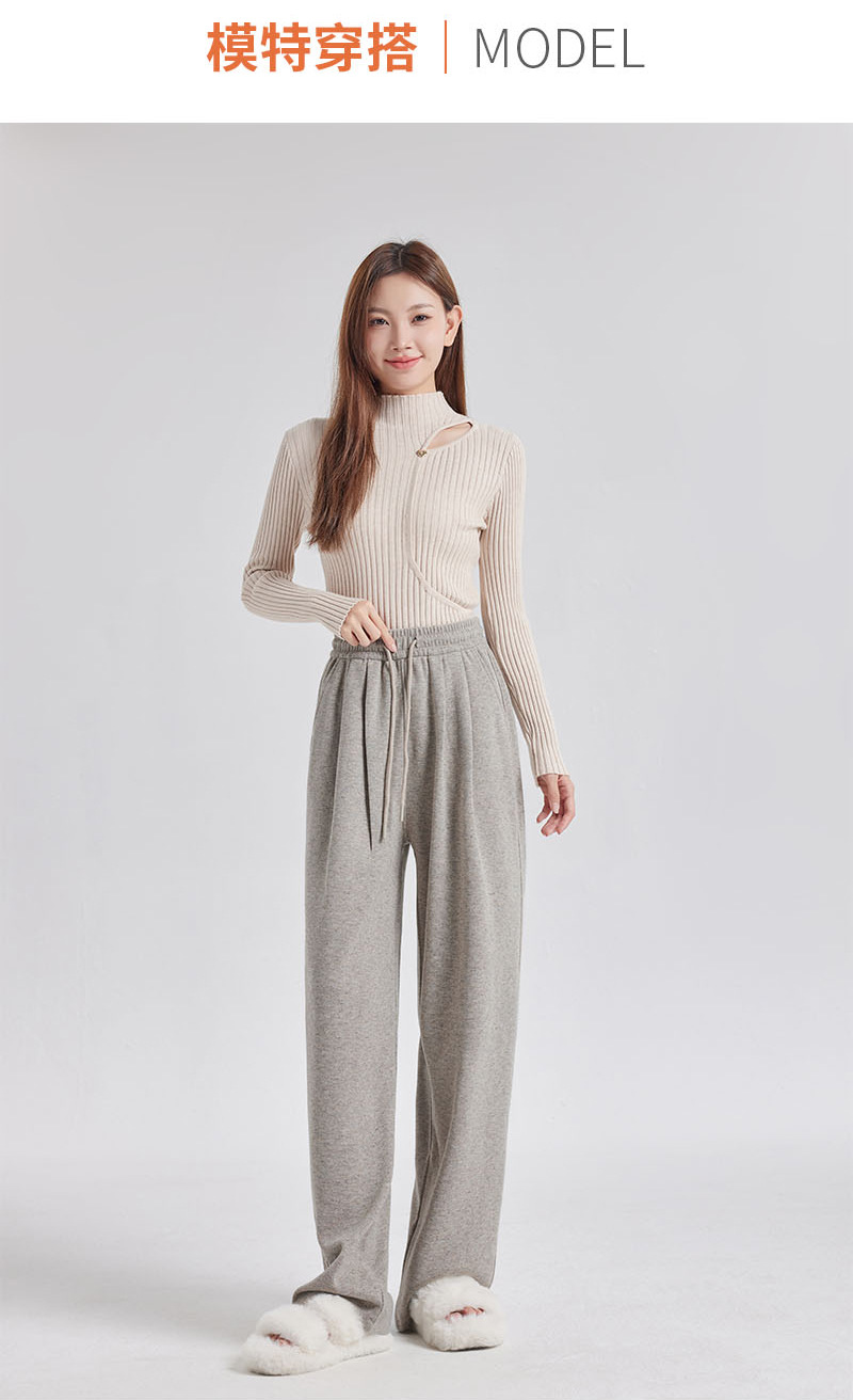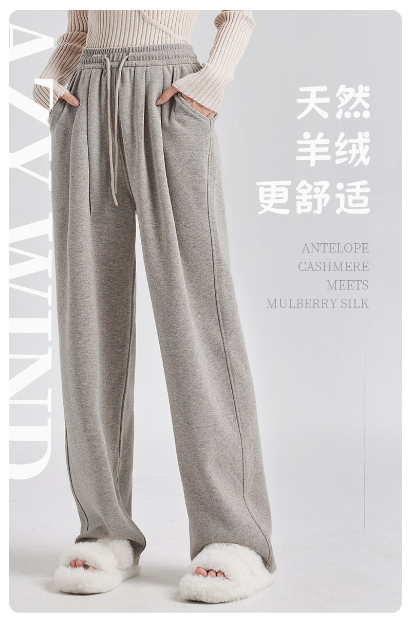 秋冬羚羊绒高腰裤子女2024新款垂感休闲糯米裤针织直筒阔腿裤💕