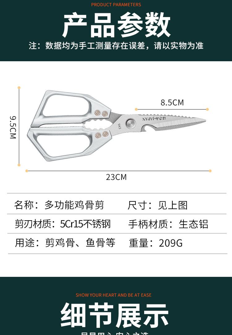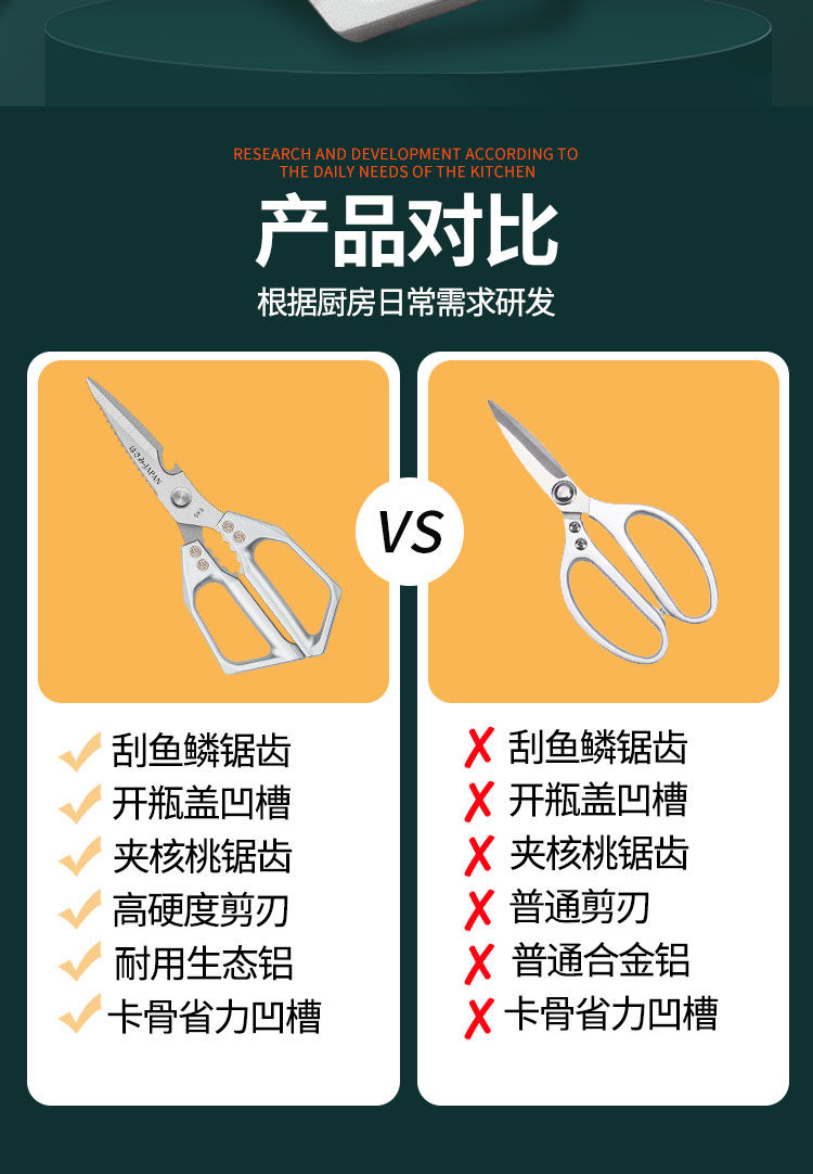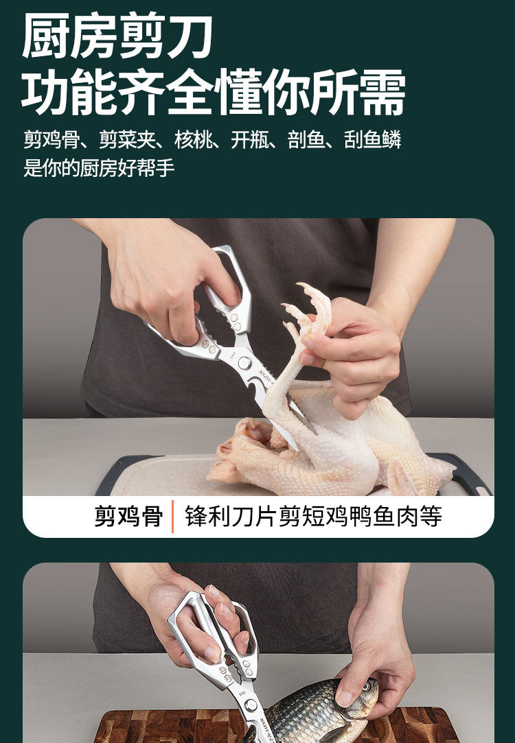 原装进口厨房剪刀专用食品级多功能剪刀家用不锈钢剪刀鱼杀鸡骨剪