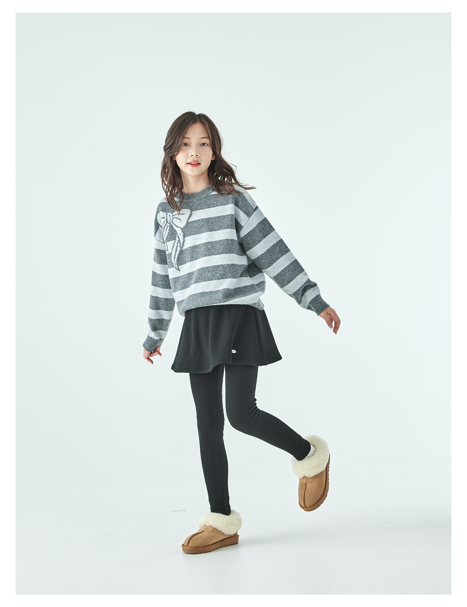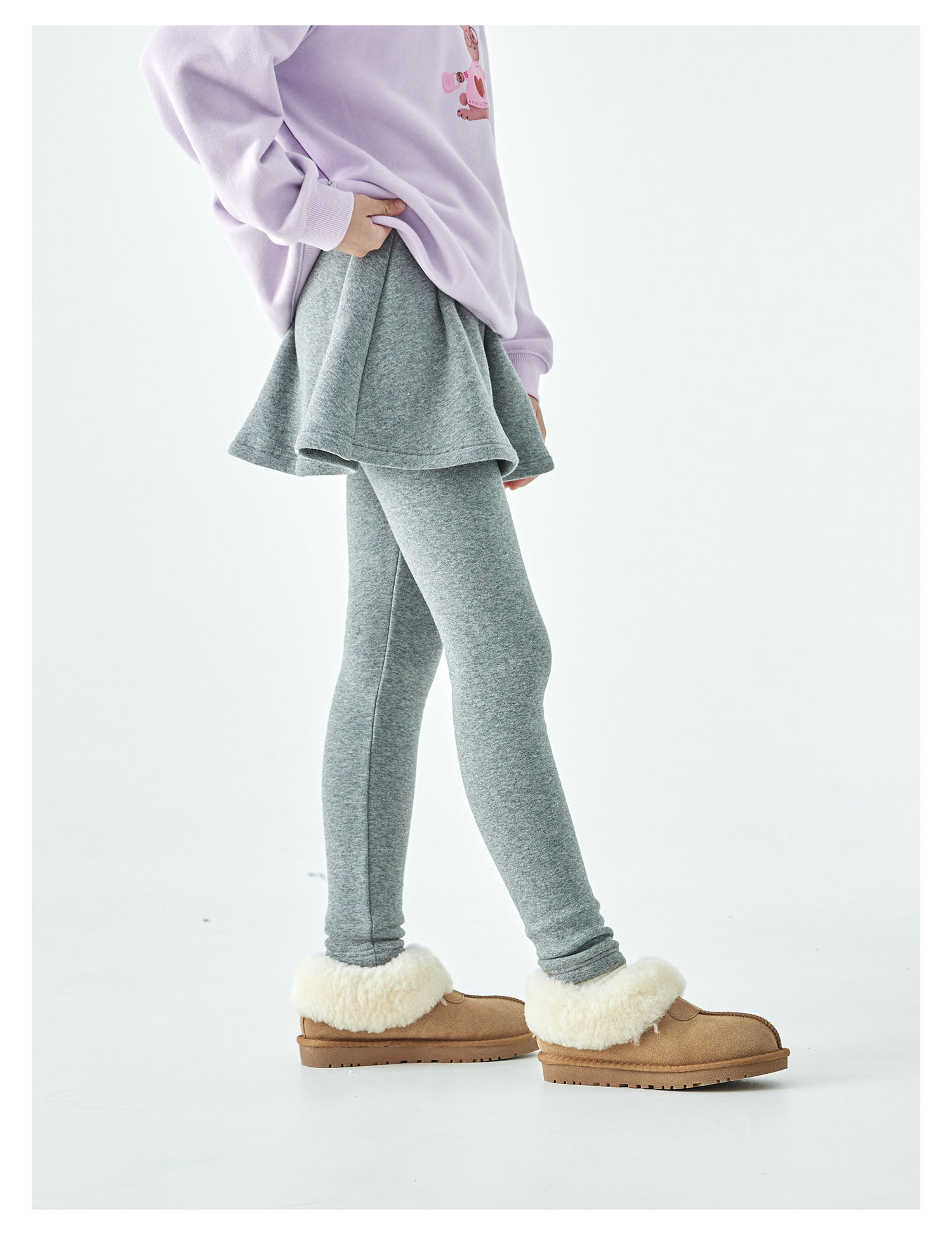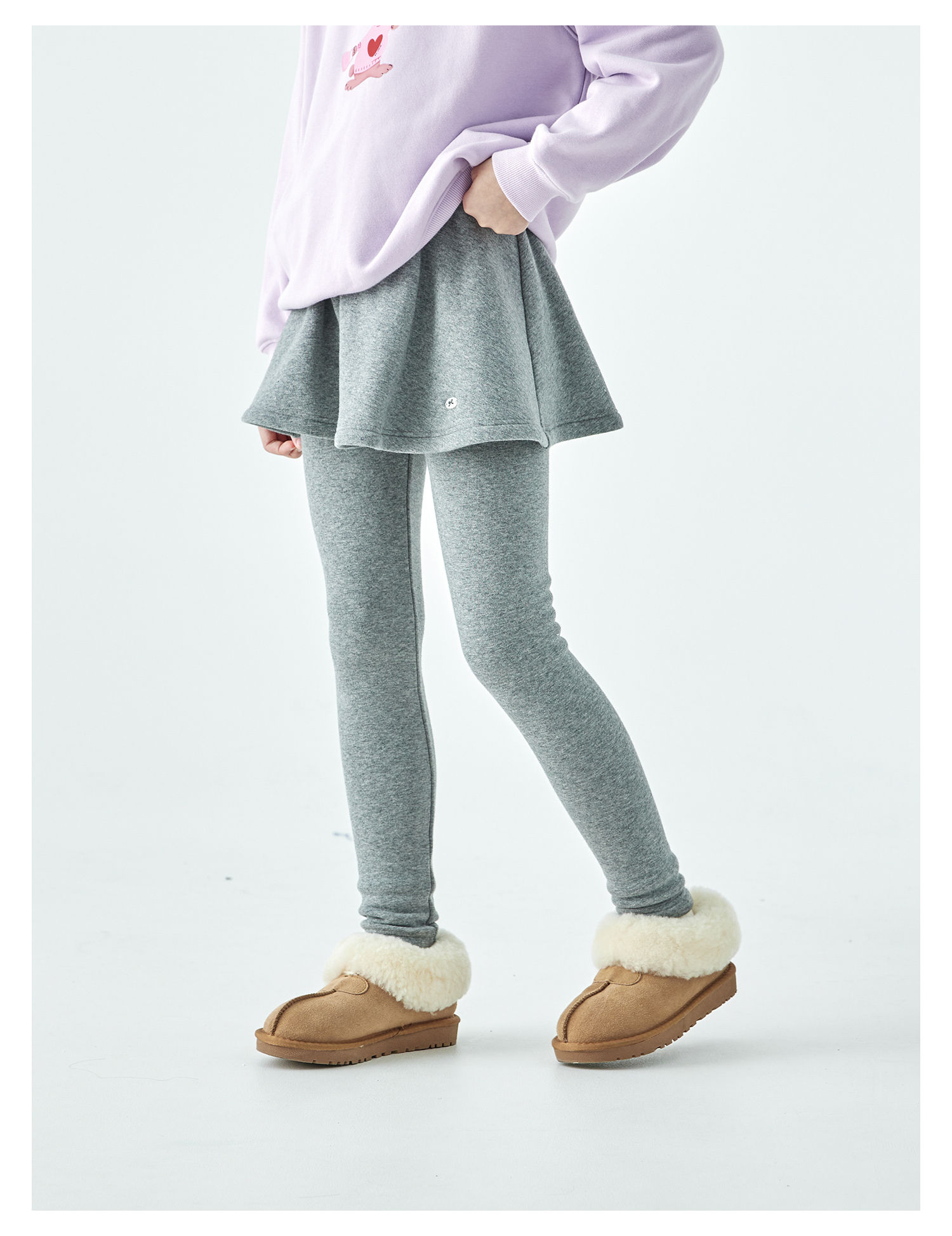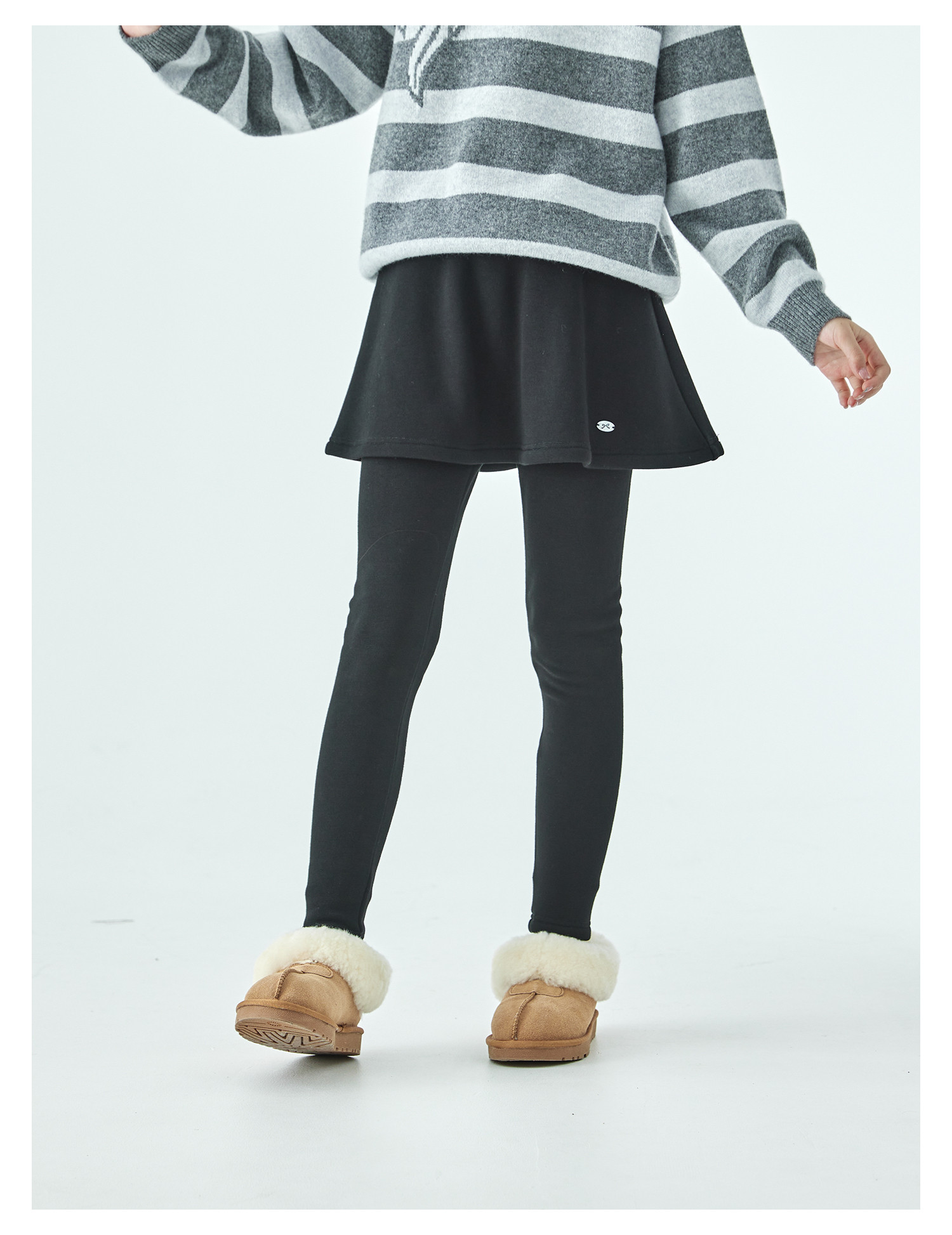 棵初25年秋冬新款亲子中大女童下摆蝴蝶结打底裙假两件叠穿打底裤