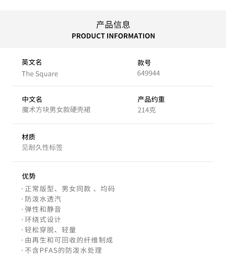 HOUDINI胡丁尼 The Square 魔术方块 户外硬壳防水短裤裙649944