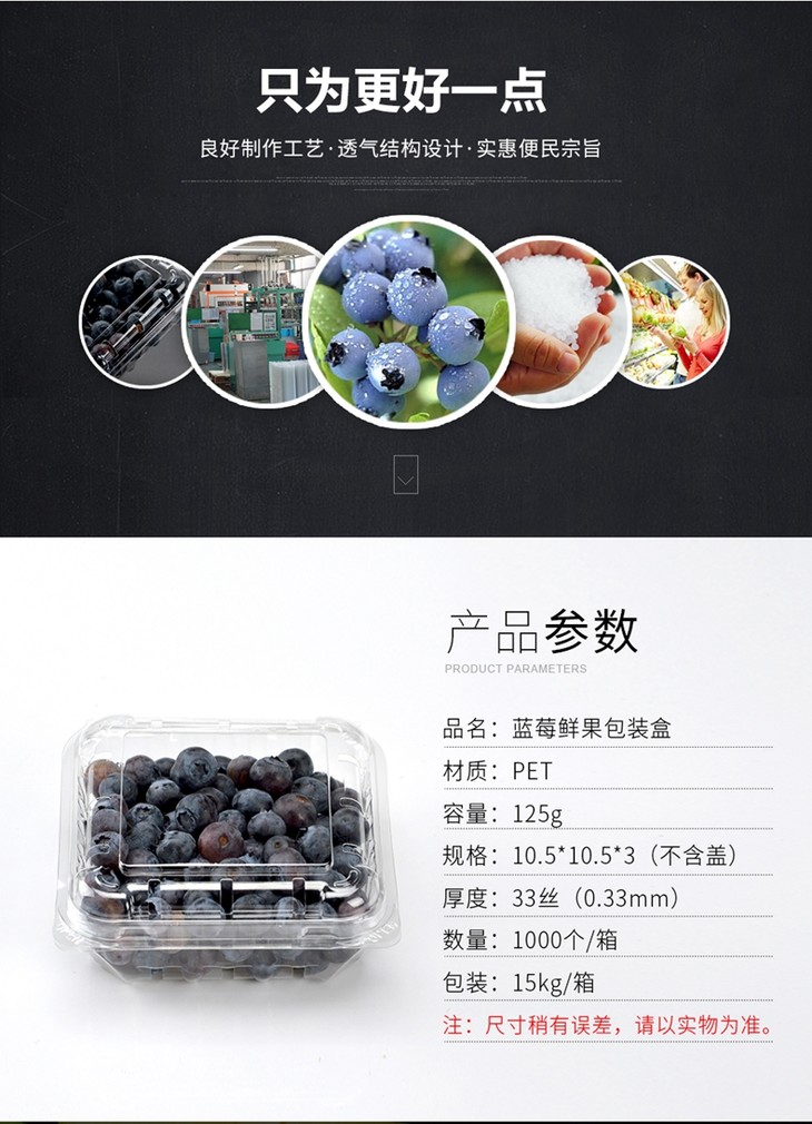 喇叭花125g蓝莓盒水果一次性透明樱桃草莓包装塑料加厚桑果盒100个
