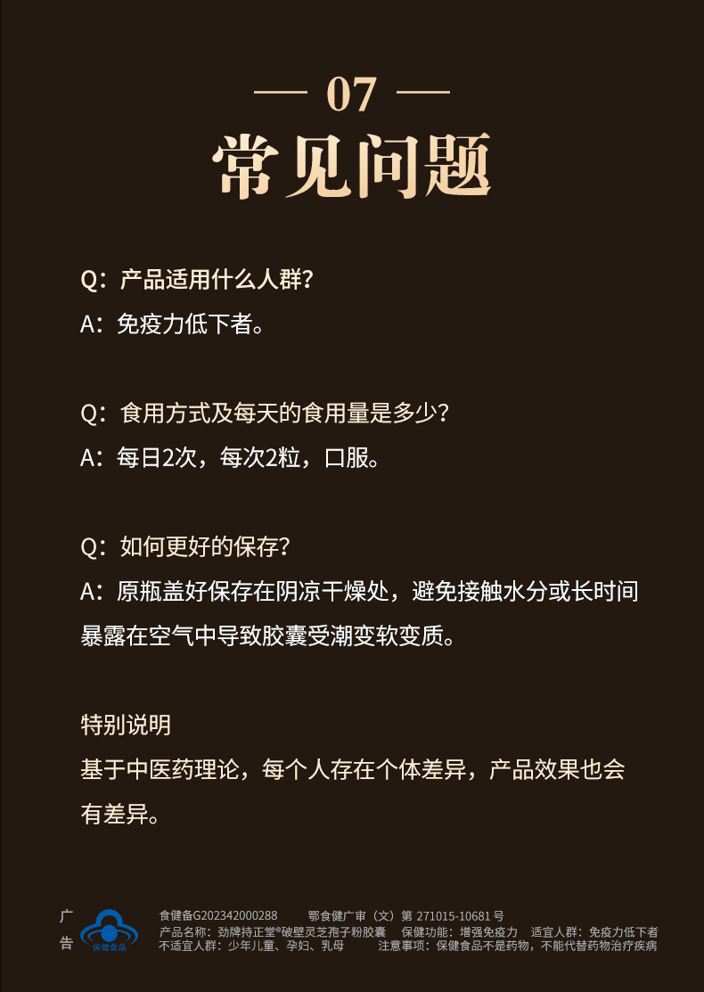劲牌持正堂破壁灵芝孢子粉胶囊