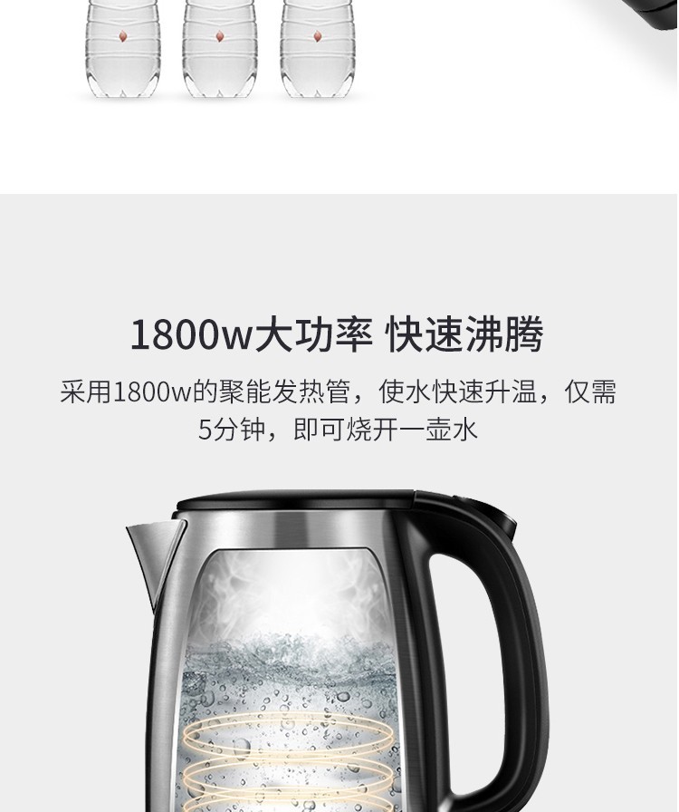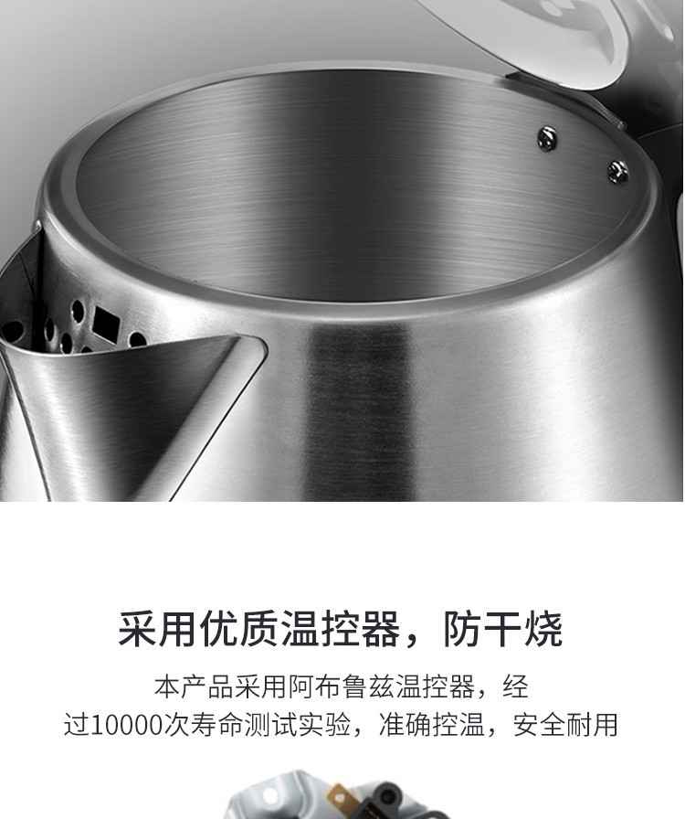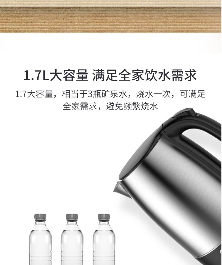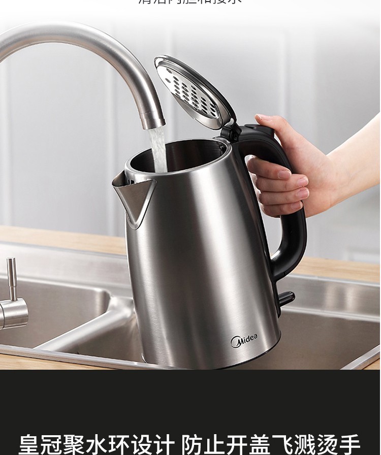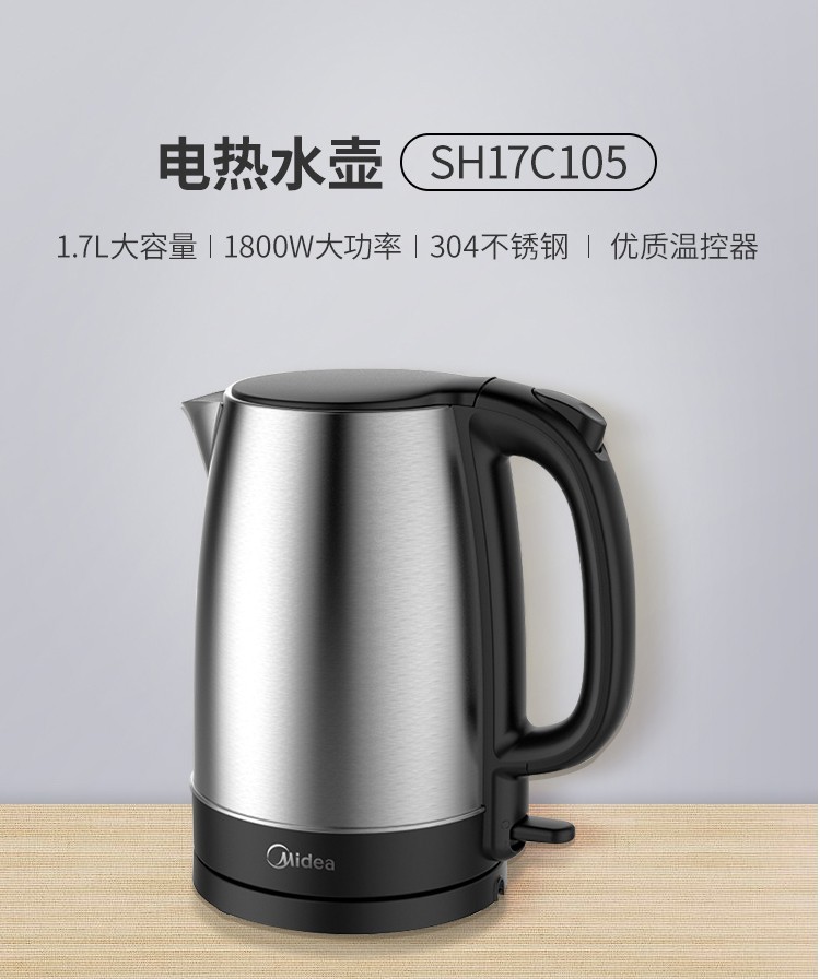 美的(Midea)电热水壶烧水壶1.7L大容量304不锈钢 SH17C105