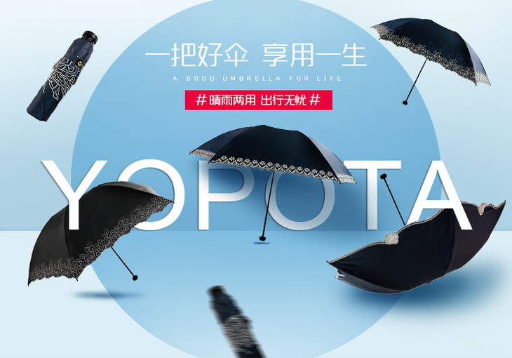 优品堂【夏夜阑珊】超轻黑胶防晒遮阳伞太阳伞防紫外线折叠两用晴雨伞女