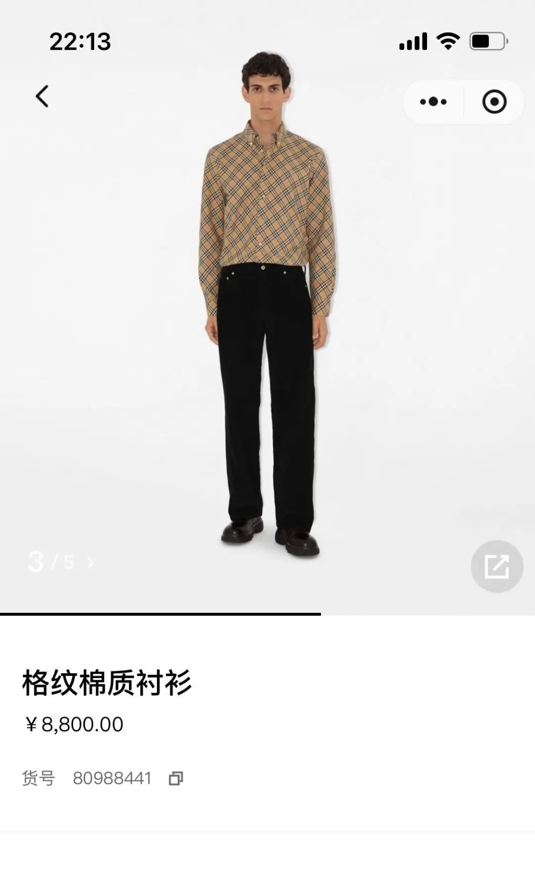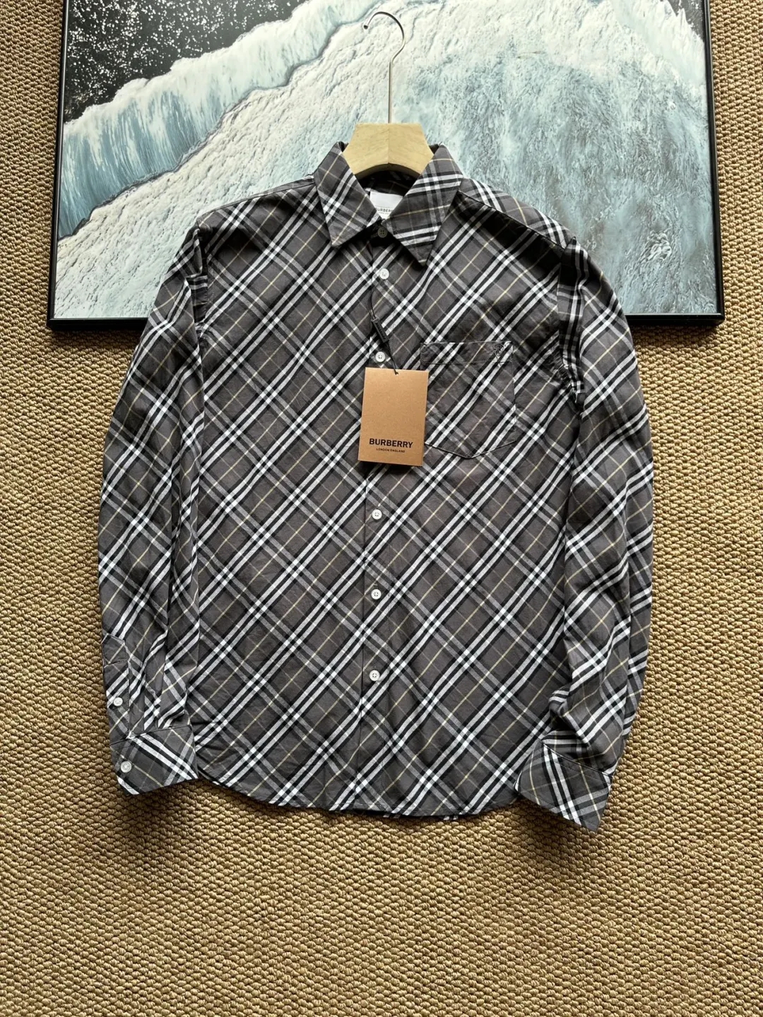 BURBERRY/博柏利男士SS25格纹单侧胸袋蛇年限定款商务休闲长袖衬衫