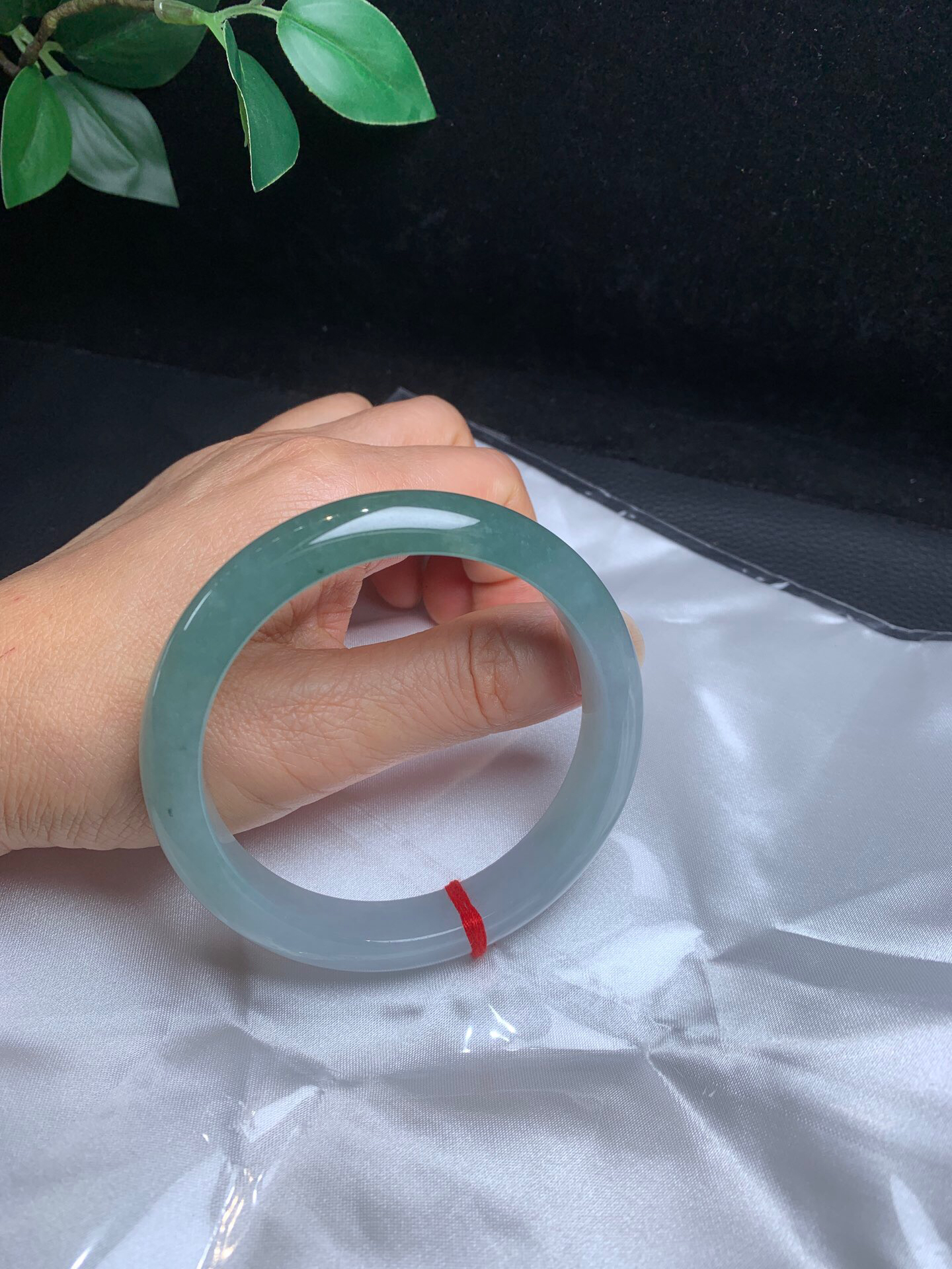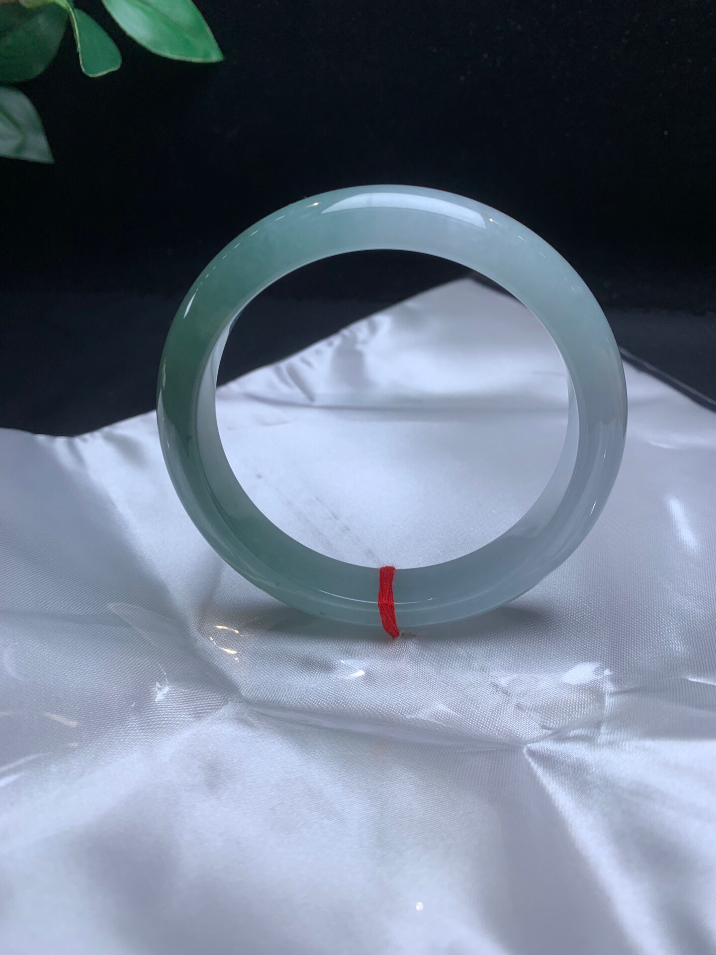 620350,60.5冰底油青半山水手镯 ,12.4-8mm,冰底 一半油青色,干净清爽,润润的,完美的。超值价💰26900 #优石客珠宝#香玉荟萃