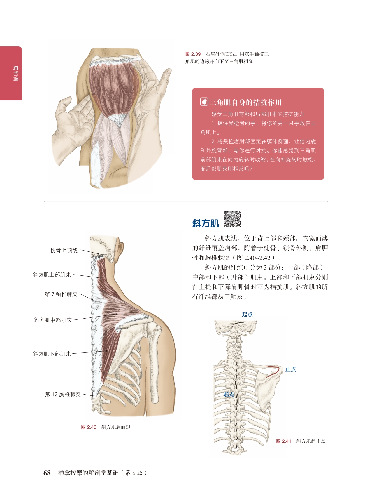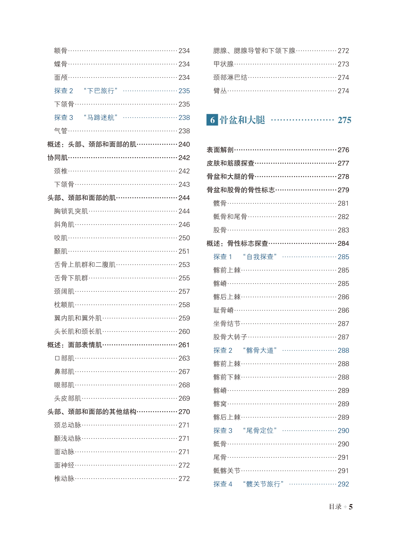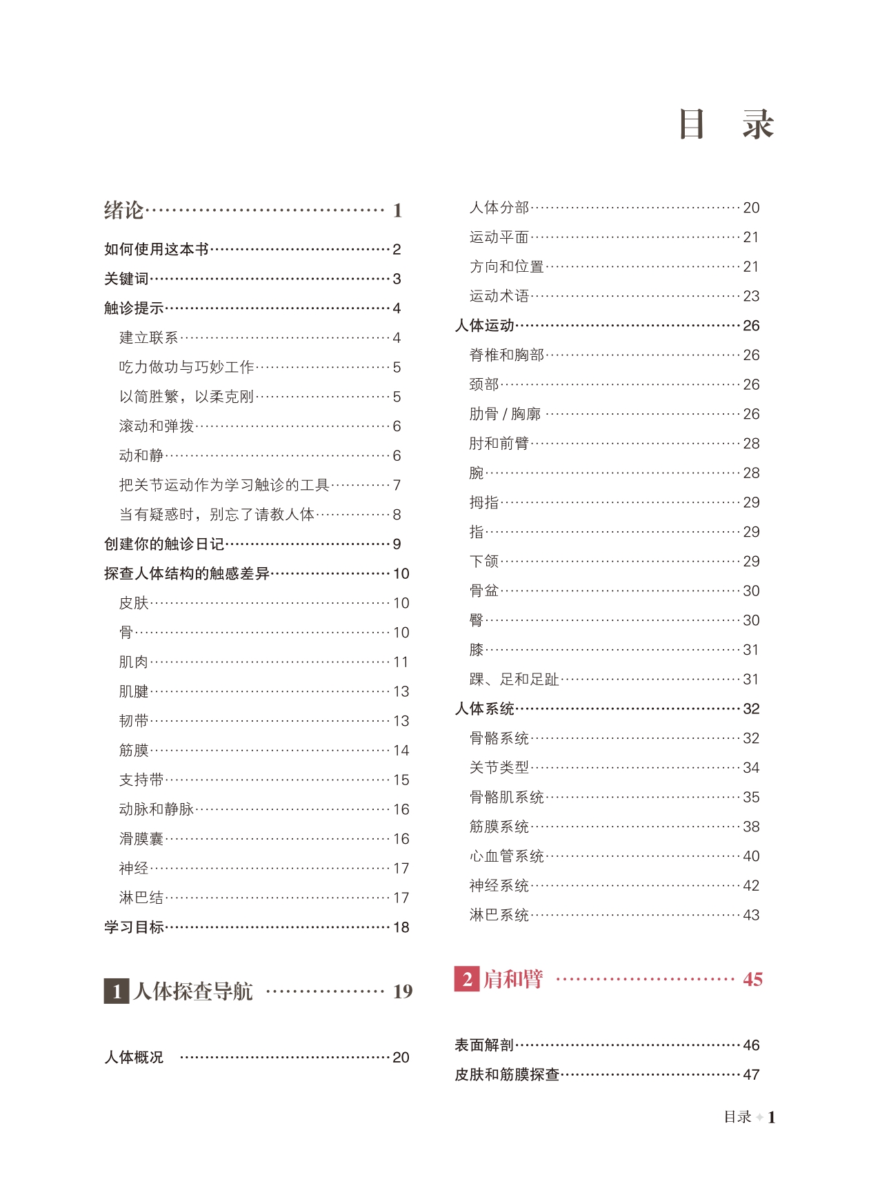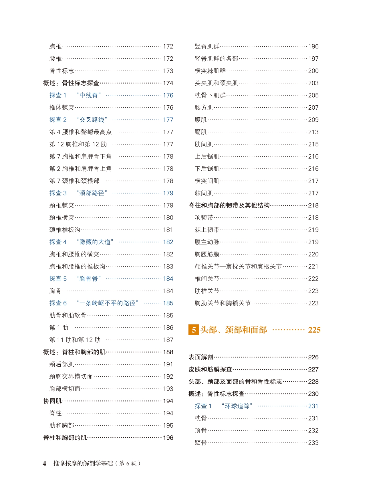 本书从临床触诊和推拿按摩的角度,为读者描绘了全身几乎所有的骨性和肌性标志以及重要的血管神经投影。图文并茂、绘图精准、解说精炼,可称得上是此类著作中的佼佼者。适用于按摩治疗师、康复医师、物理治疗师、临床骨科医师、运动健身教练以及解剖学教师。第6 版除了保持前几版的优点外,新增了两大特色。一是叠加图片。这一版呈现了200 多张叠加在人体模型上的图片,让读者直观感受皮肤下的体表标志的情况,并将皮下的解剖结构形象化。二是触诊视频。这一版新增了配套触诊视频,让读者跟随作者安德鲁·比尔的一步步讲解,明确如何定位和触诊全身91 个人体结构。这些内容对按摩治疗和人体表面解剖结构的学习非常实用和有效。