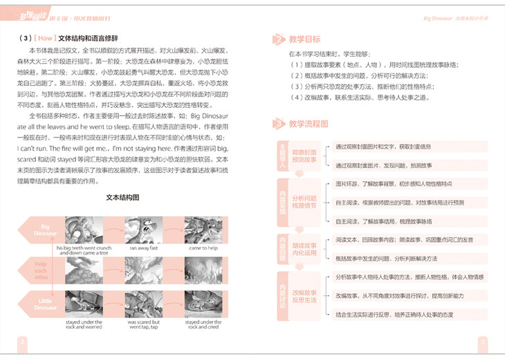 “多维阅读中文教师用书”根据本土教学实践经验研发,精心编写了教学设计,包含文本解读、教学目标、教学流程图、教学过程、课堂小结、课外作业和可供选择的学案,为教师解决“教什么、怎么教”的难题提供了完美解决方案。“英文版教学指导用书”在中文教师用书的基础上根据教师课堂教学需求研发,为读物的每一页都设计了实用的英文教学提示,给教师教学提供了语言便利,方便教师帮助学生破译阅读密码、进行深度学习。