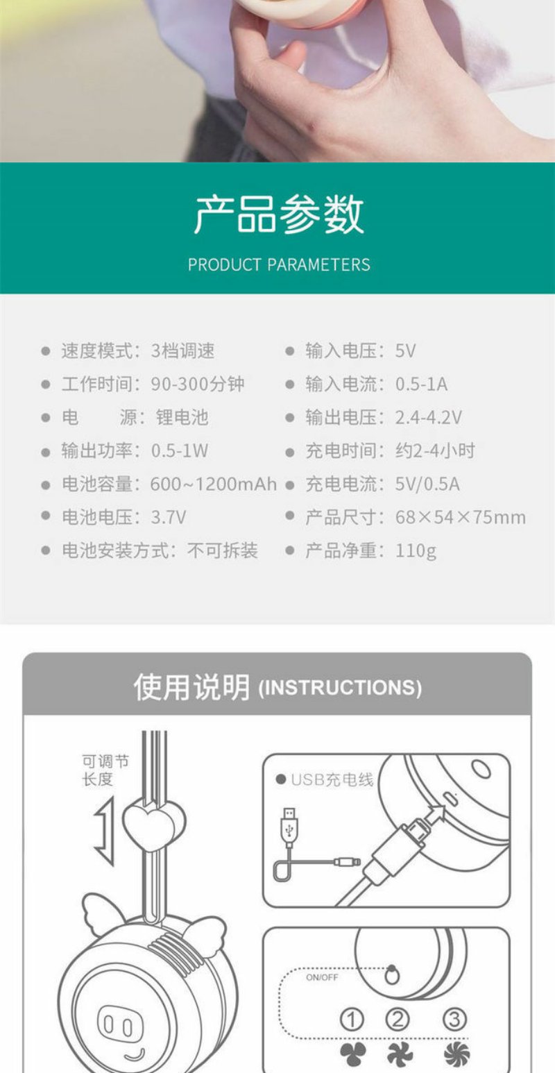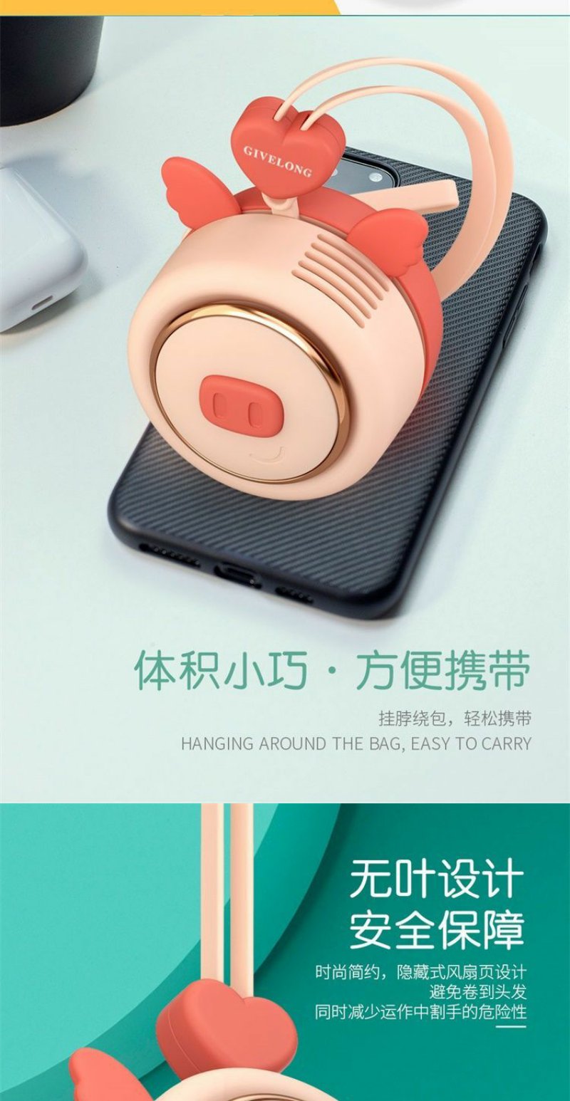 usb小风扇手持迷你挂脖充电静音学生宿舍大风力随身便携式电风扇1