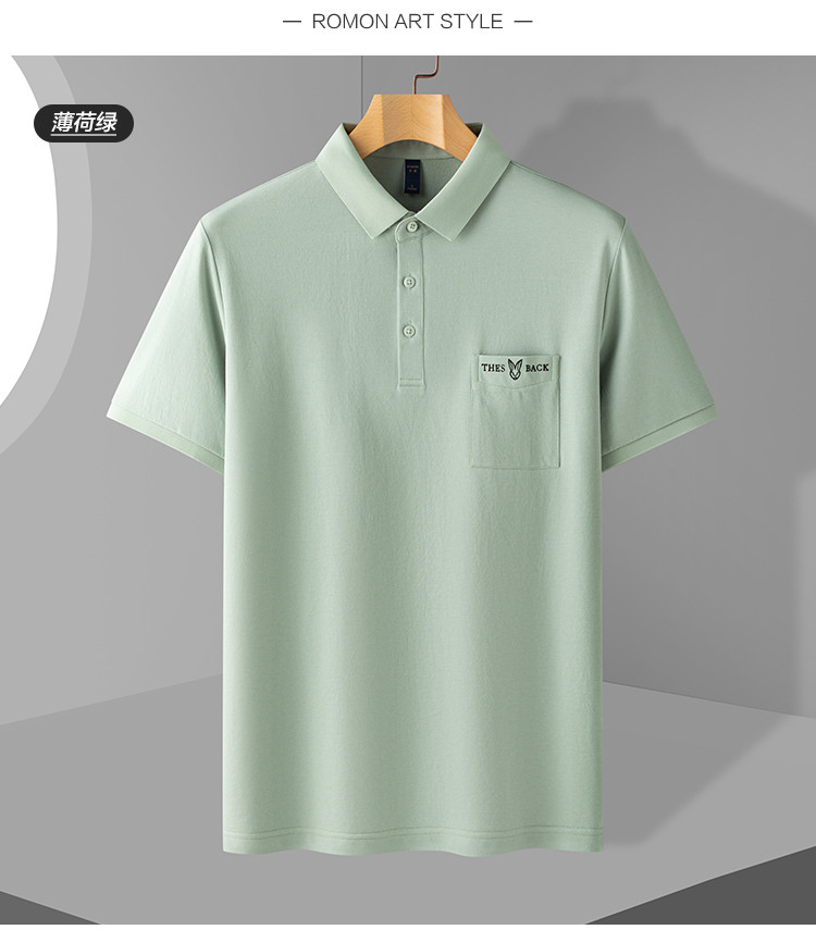 【含桑蚕丝】罗蒙男士刺绣口袋polo衫男短袖男夏季冰丝t恤男士短袖 商品图8