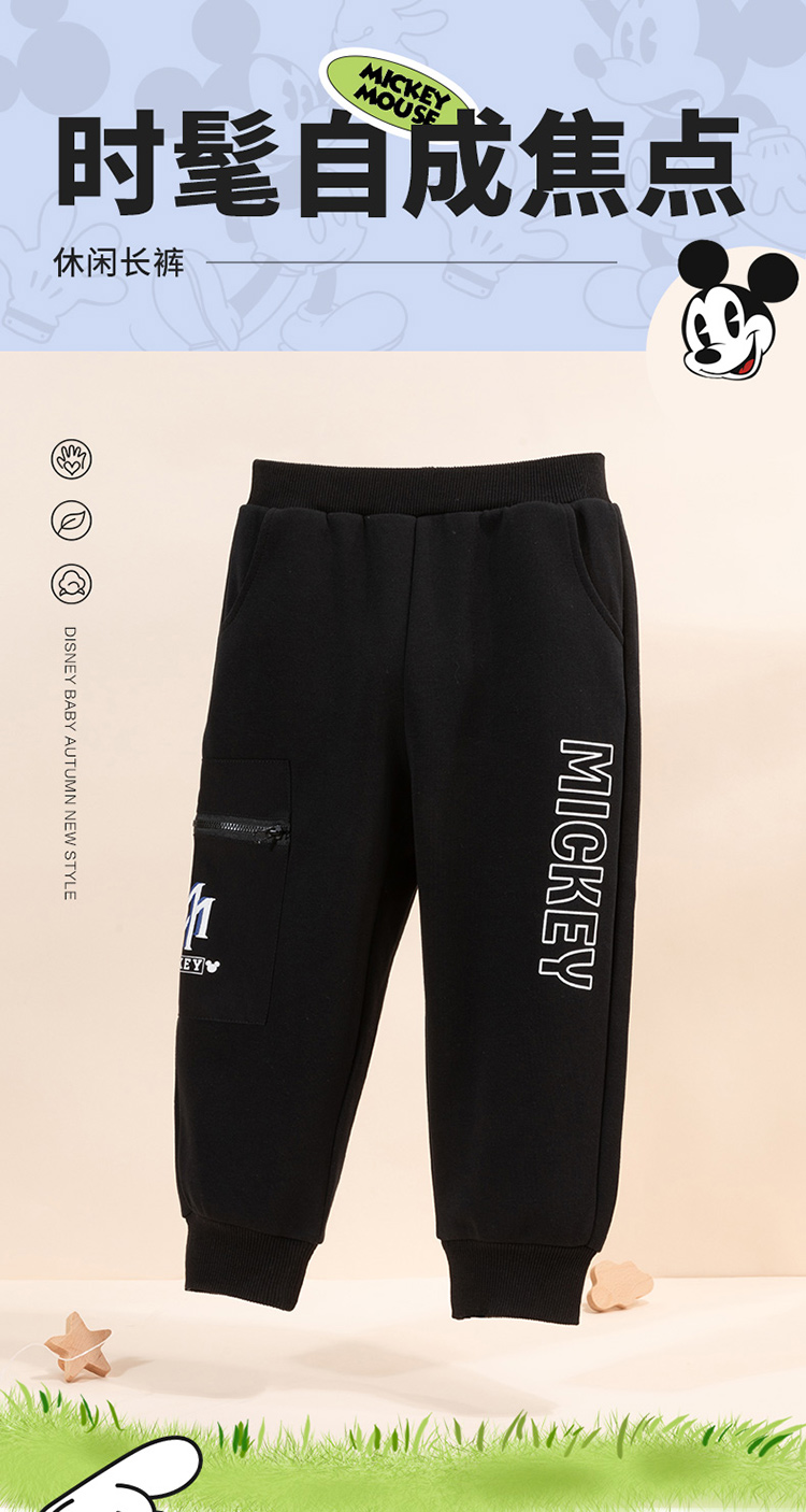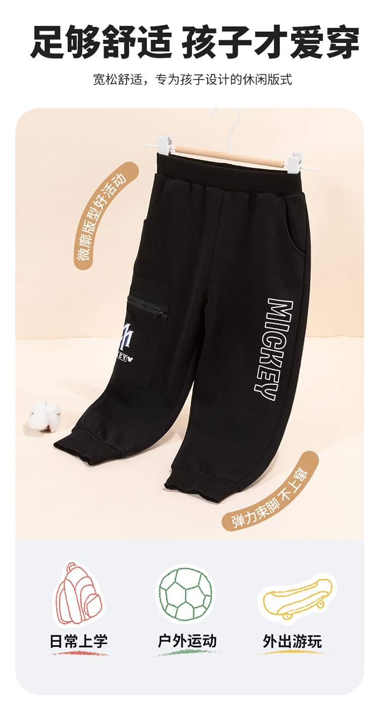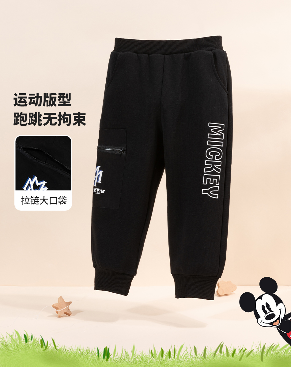迪士尼童装男童裤子2024夏季新款透气防蚊裤儿童束脚休闲薄款长裤ZD3DK005