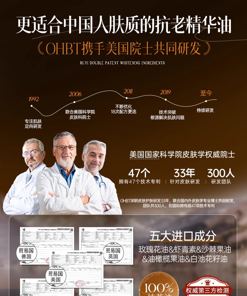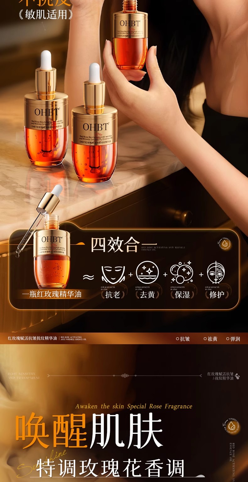 OHBT红玫瑰赋活抗皱抚纹精华油45ml