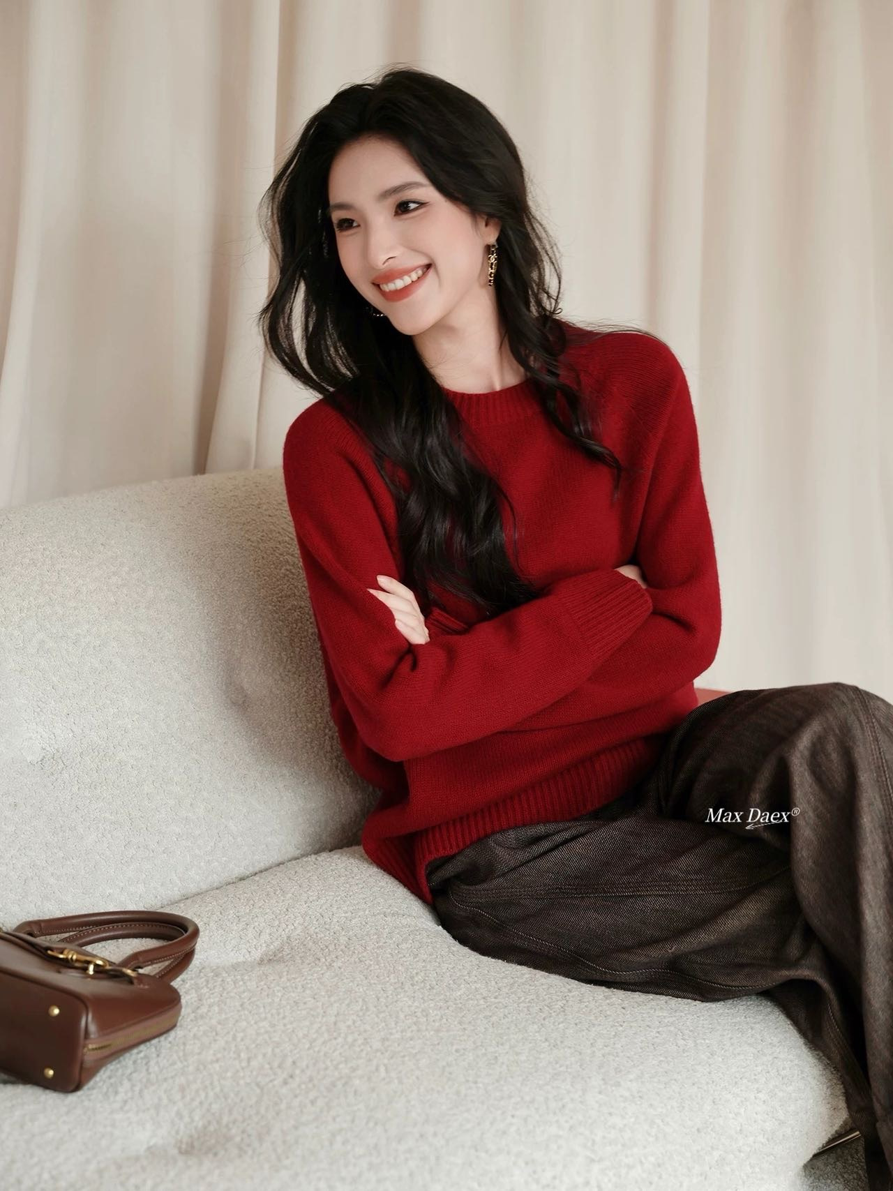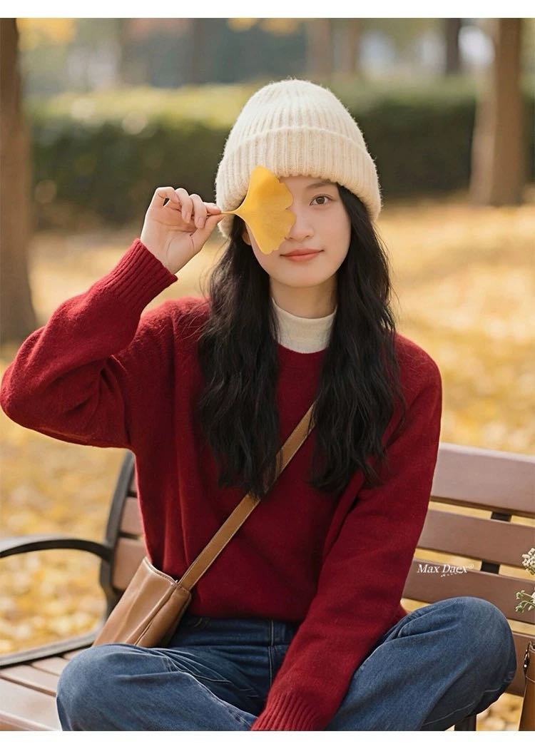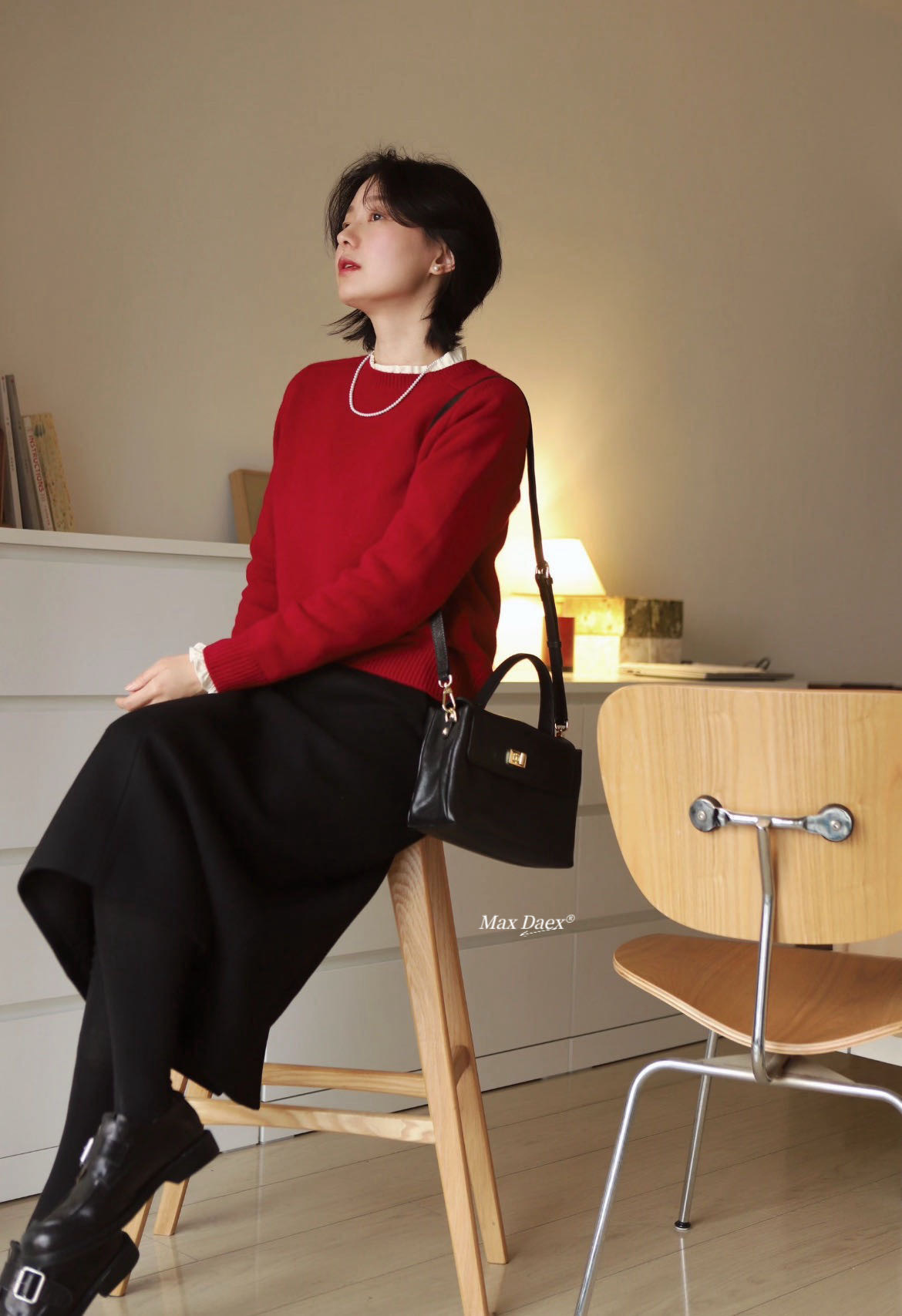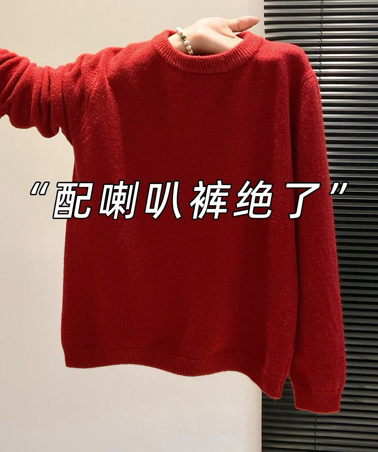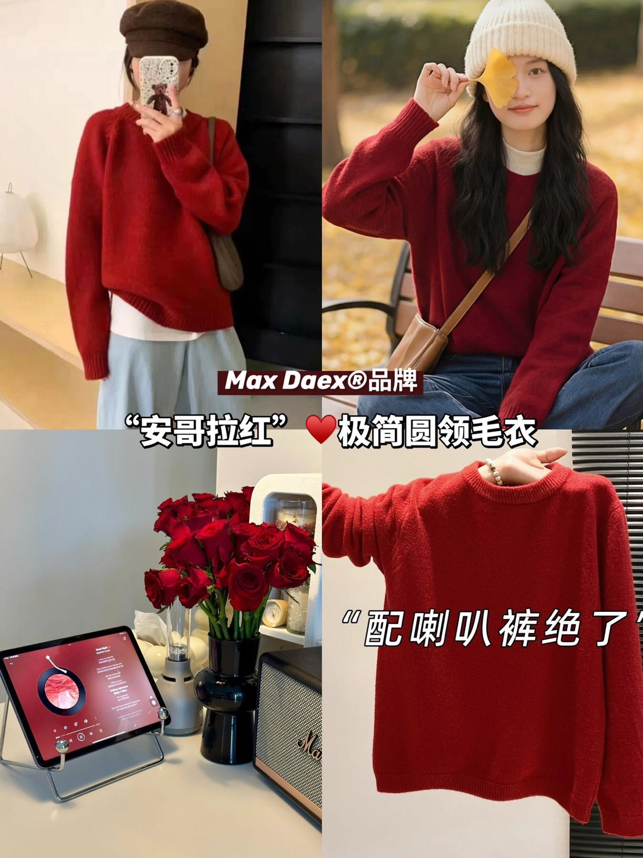 【安哥拉红极简圆领毛衣】新年“好运"氛围感,比一件外套还要抗风!超暖噢!做脸10次不如这抹车厘子红,新年穿它超应景~