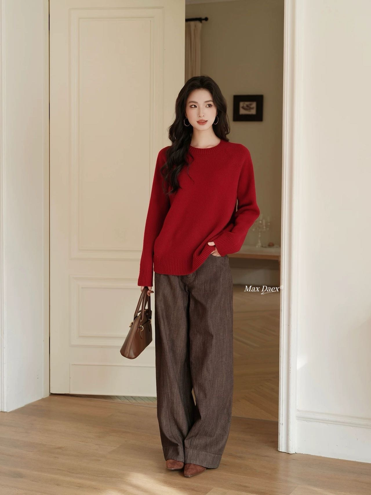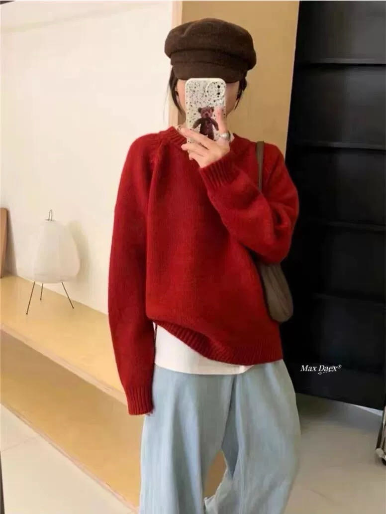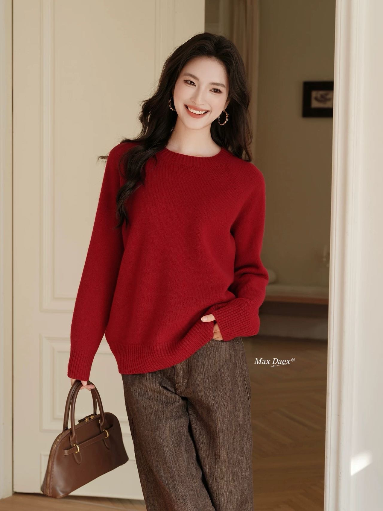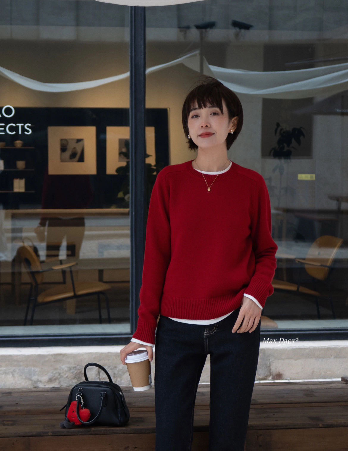【安哥拉红极简圆领毛衣】新年“好运"氛围感,比一件外套还要抗风!超暖噢!做脸10次不如这抹车厘子红,新年穿它超应景~