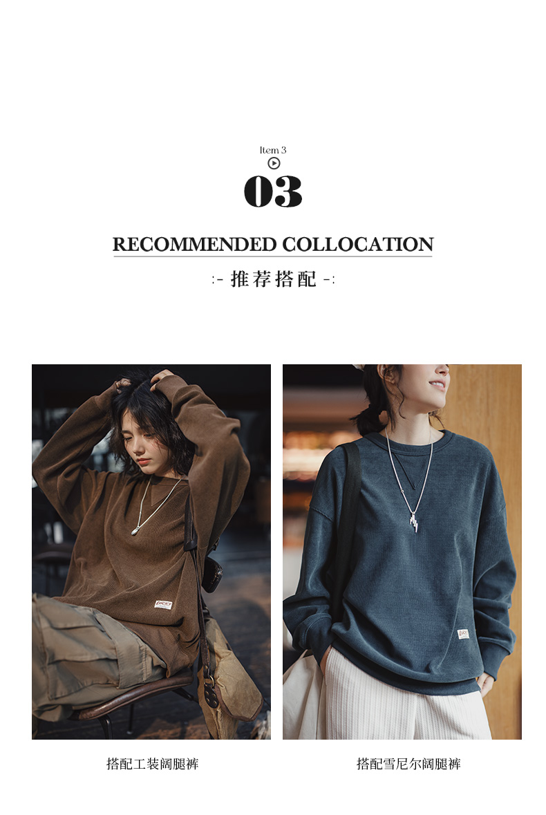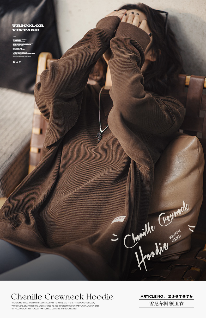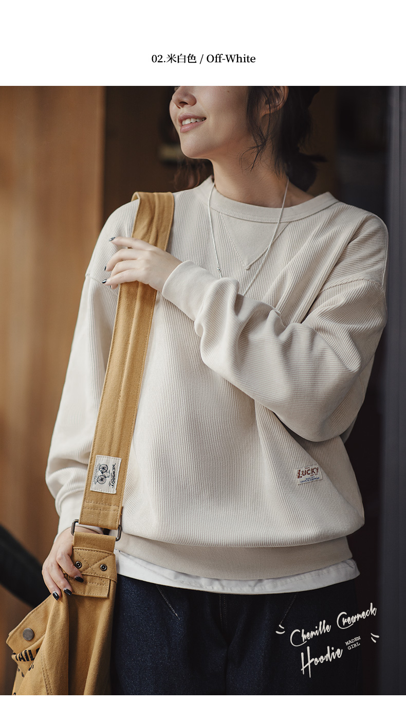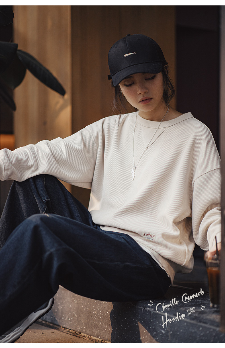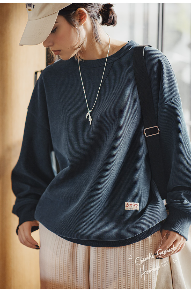 马登美式复古雪尼尔卫衣女秋套头长袖打底T恤插肩袖圆领上衣女