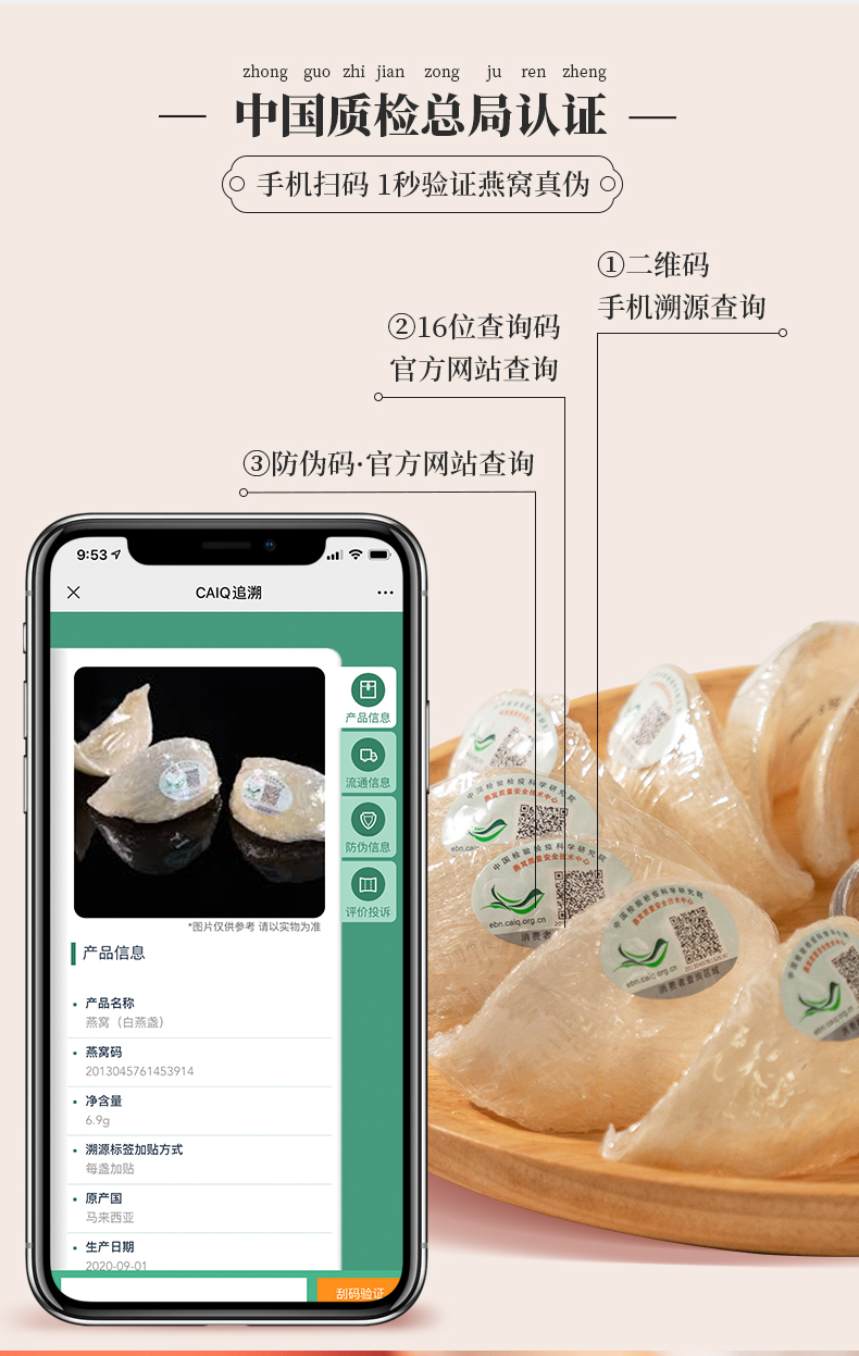 白燕窝燕盏 干燕窝 马拉西亚 可溯源 100克