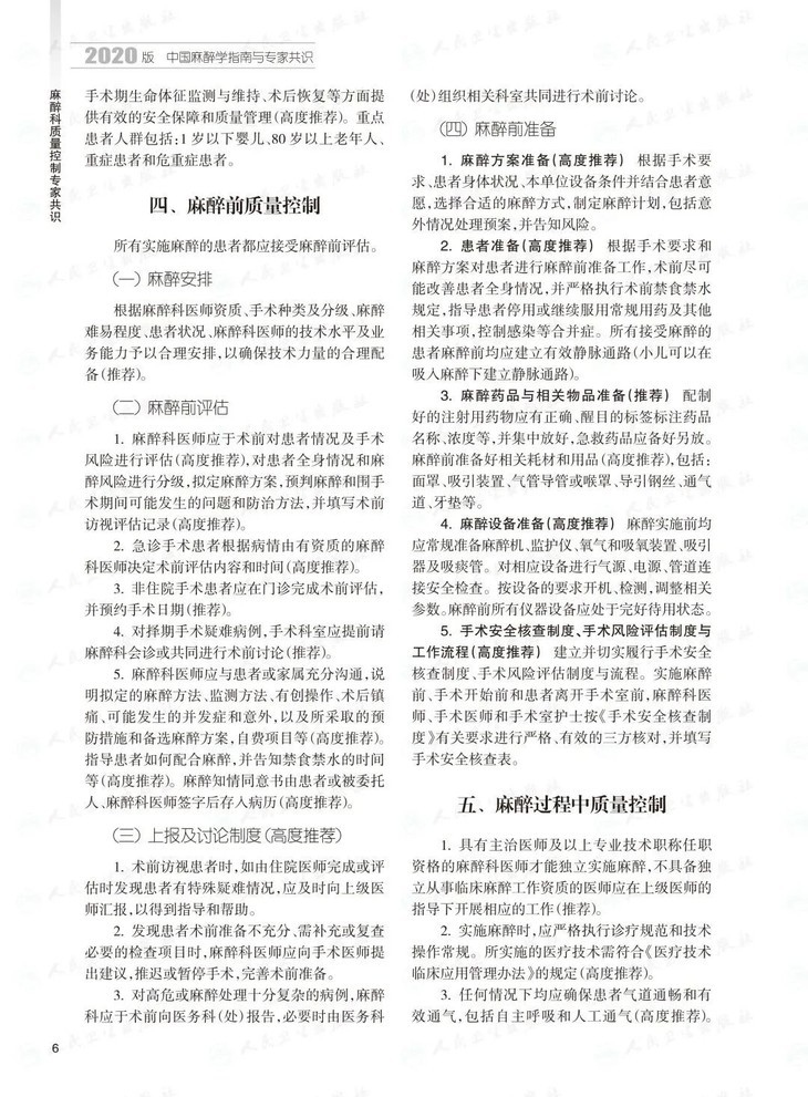 2020版中国麻醉学指南与专家共识