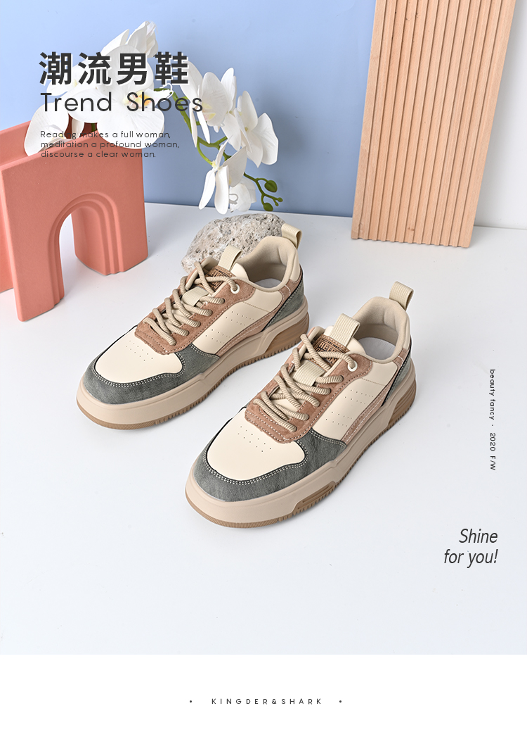 经典鲨2024年秋季新款男士平底透气拼色潮流休闲板鞋KF04-D33051