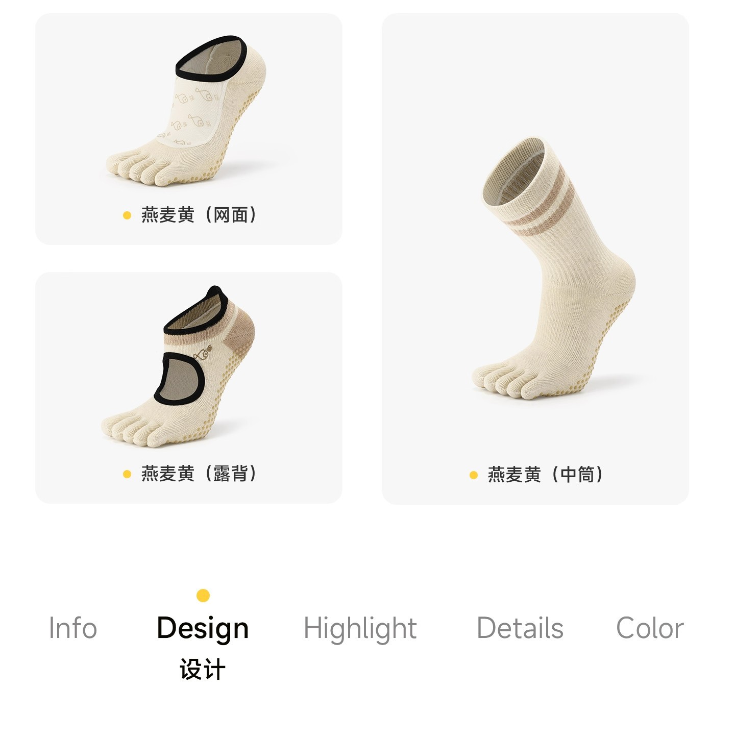 【59元任选2件】【小鱼加加】五指瑜伽袜女2026原创网面丨中筒显腿长202505
