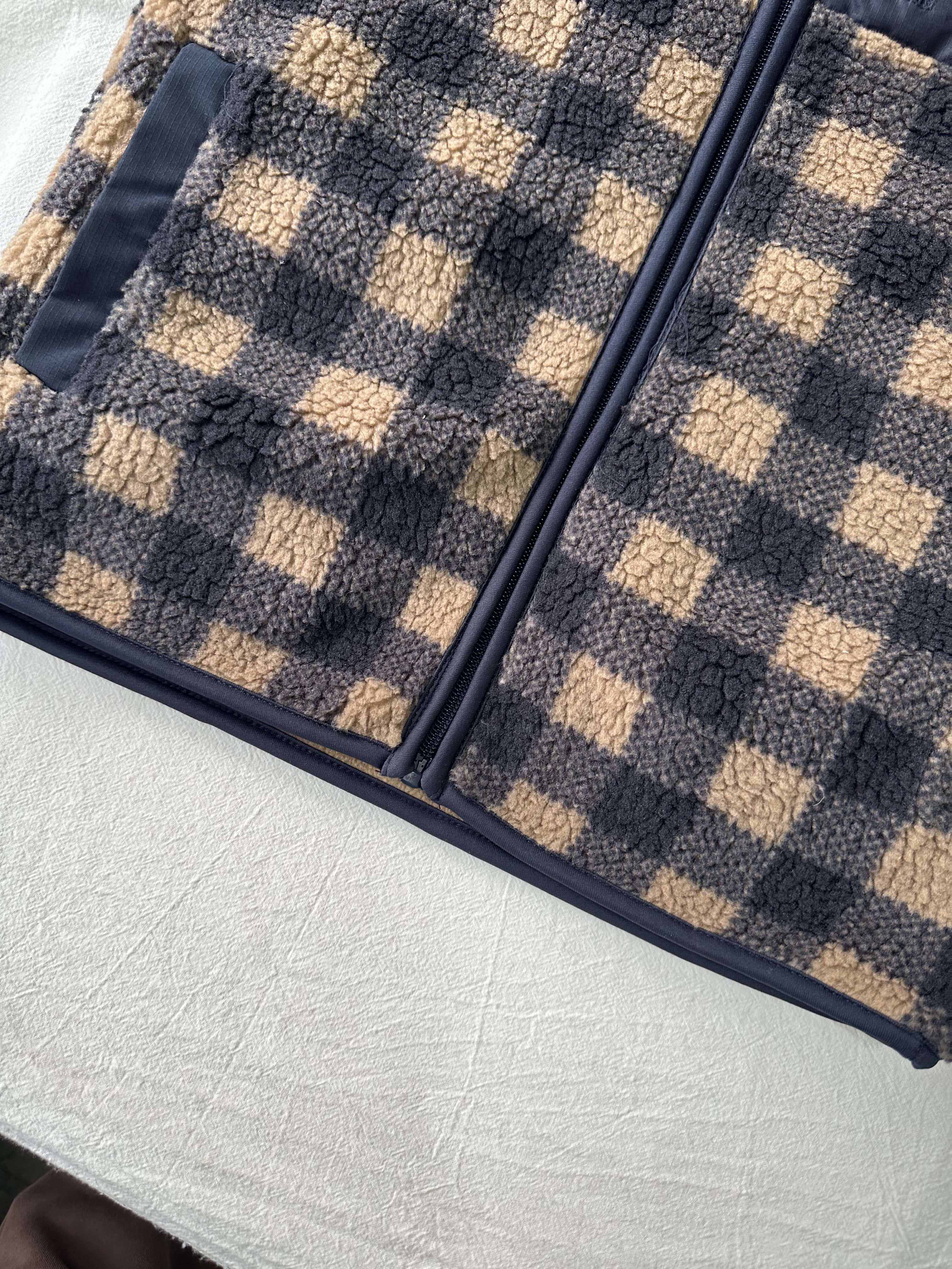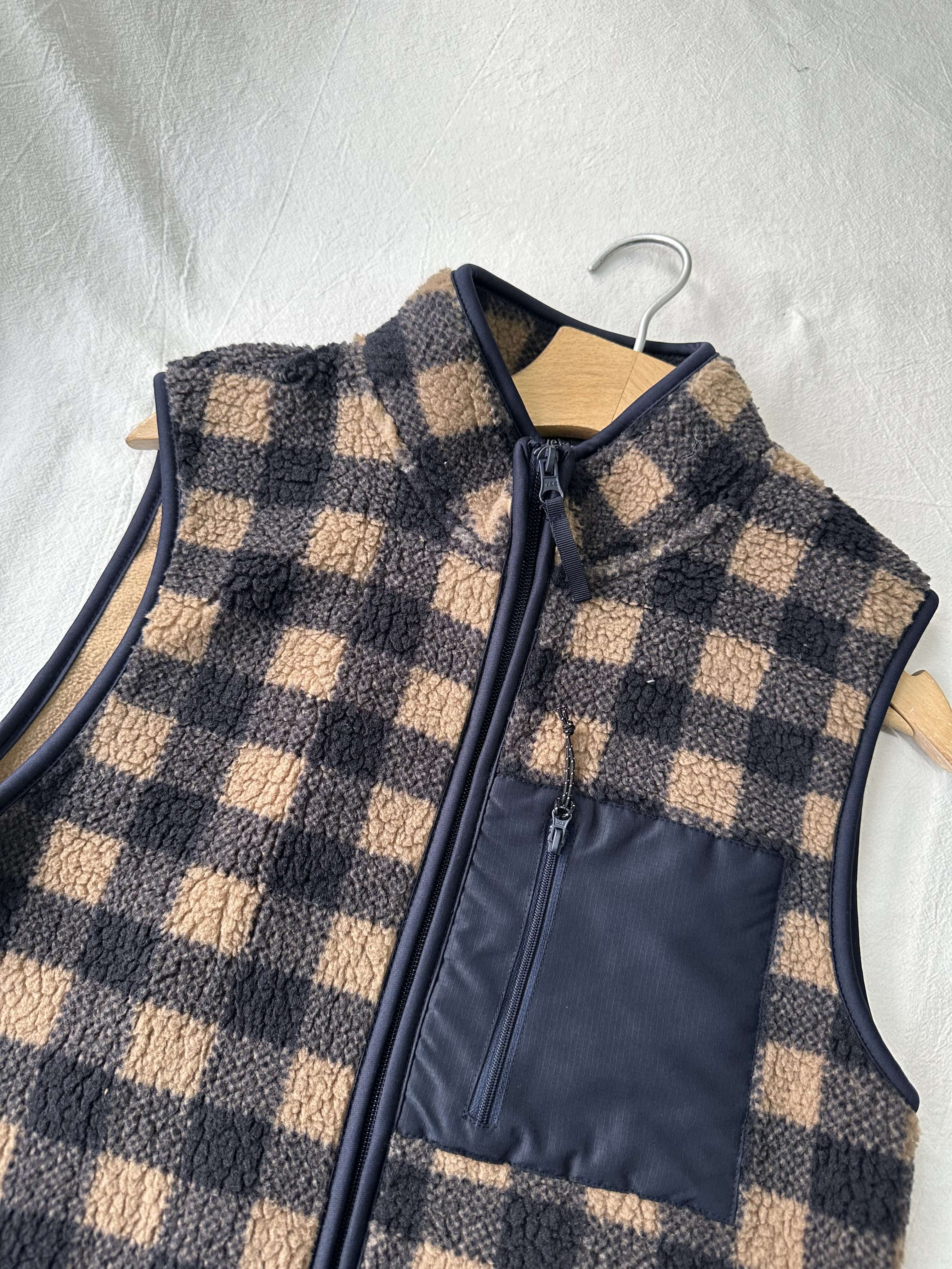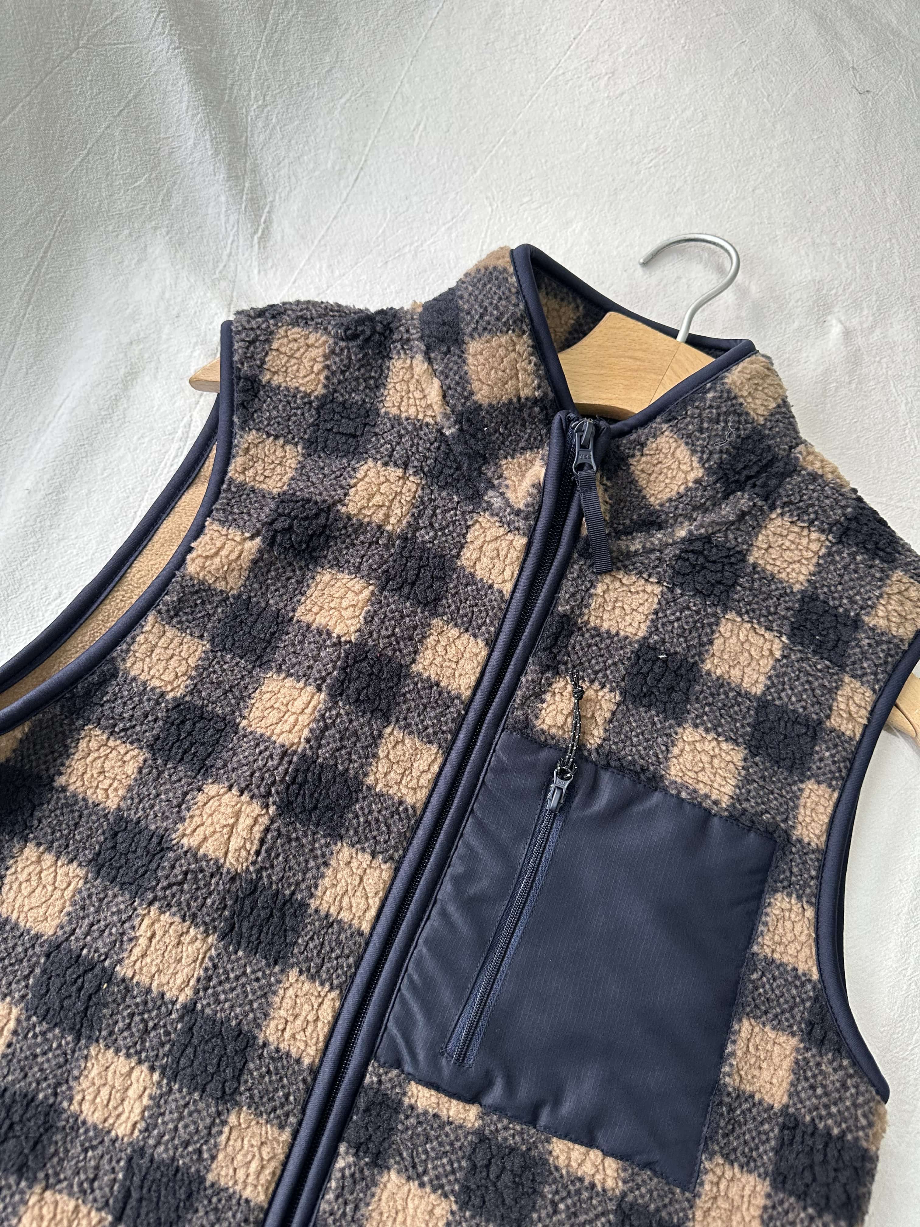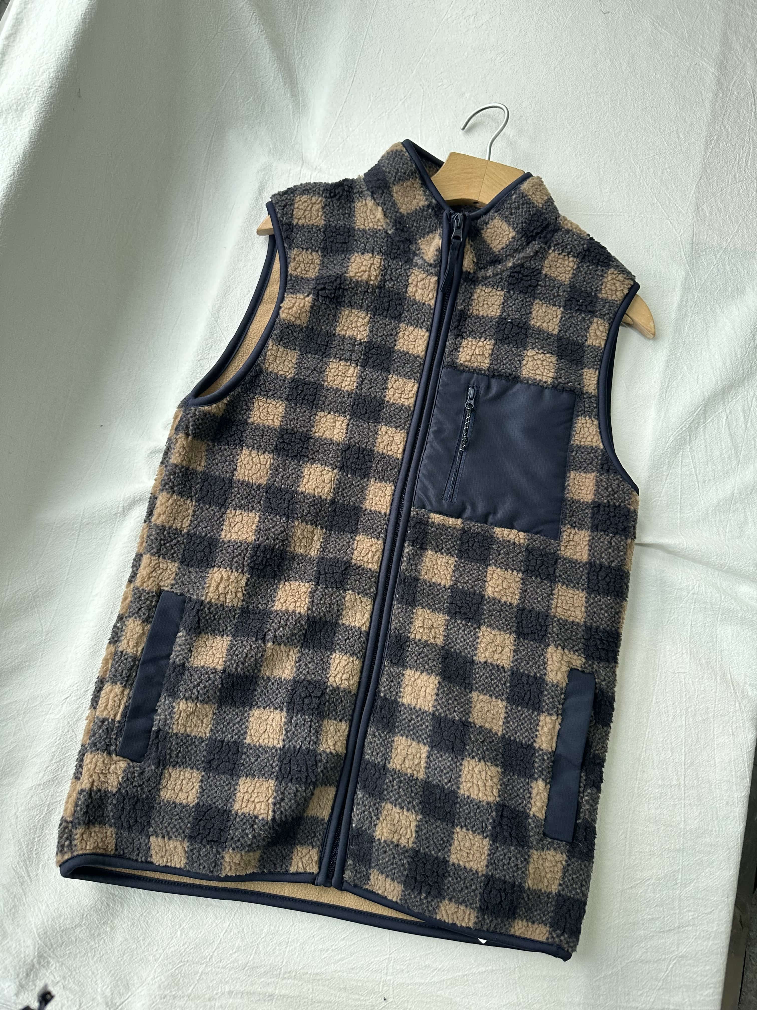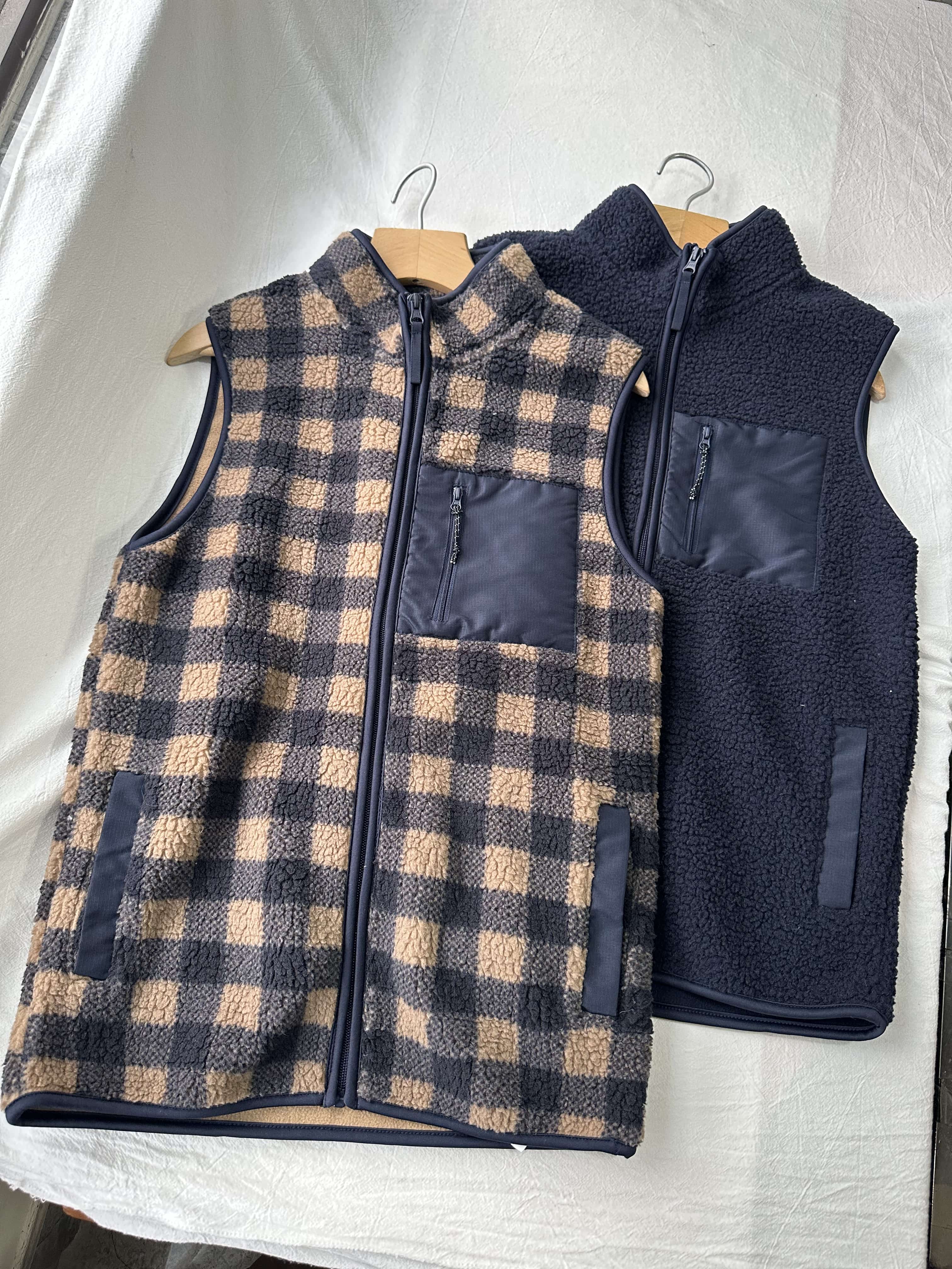 贝壳三 摇粒绒贴布口袋立领背心蓄热保暖叠穿双面绒背心C120524