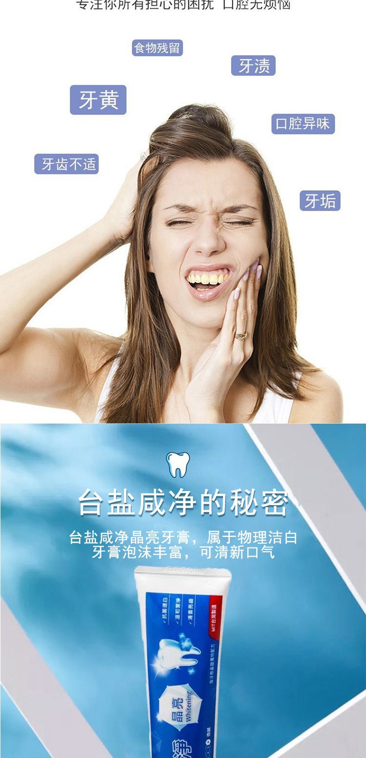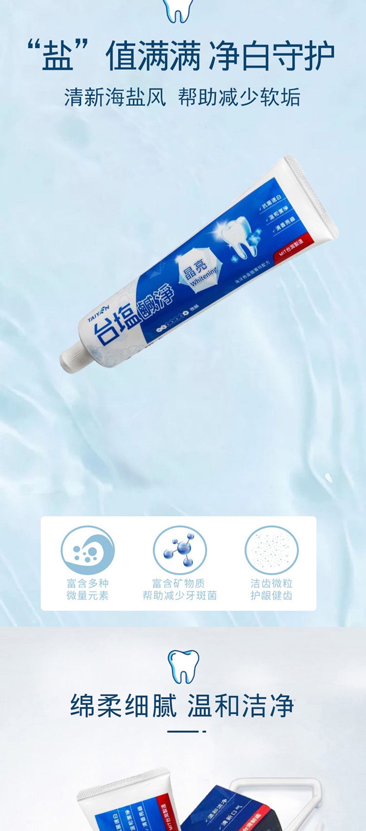 台湾进口 清洁口腔 台盐咸净晶亮牙膏 苹果香 150g 微咸