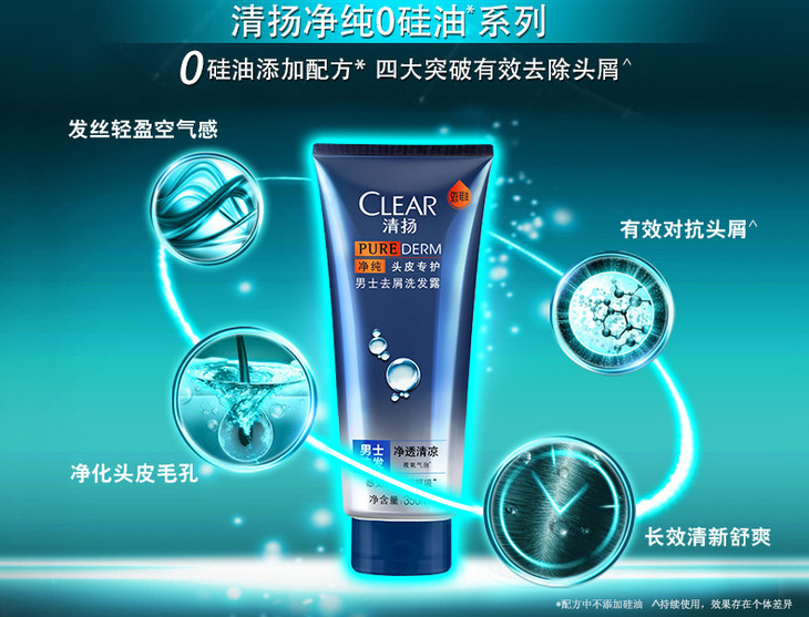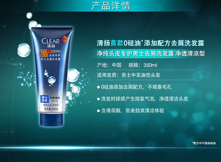 【洗发露】清扬0零硅油去屑洗发露液水男士净透清凉350ml