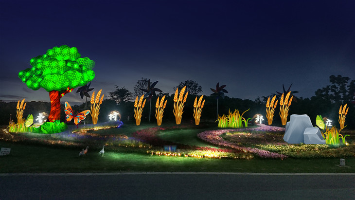 欢乐乡村、金色稻田、动植物萌区等情景灯组