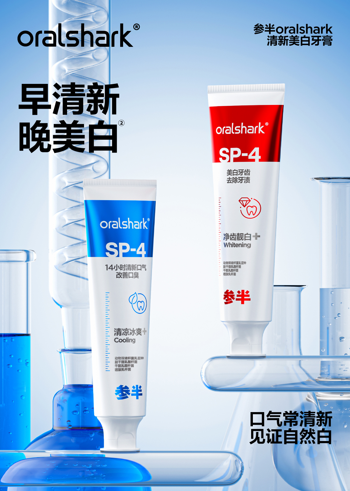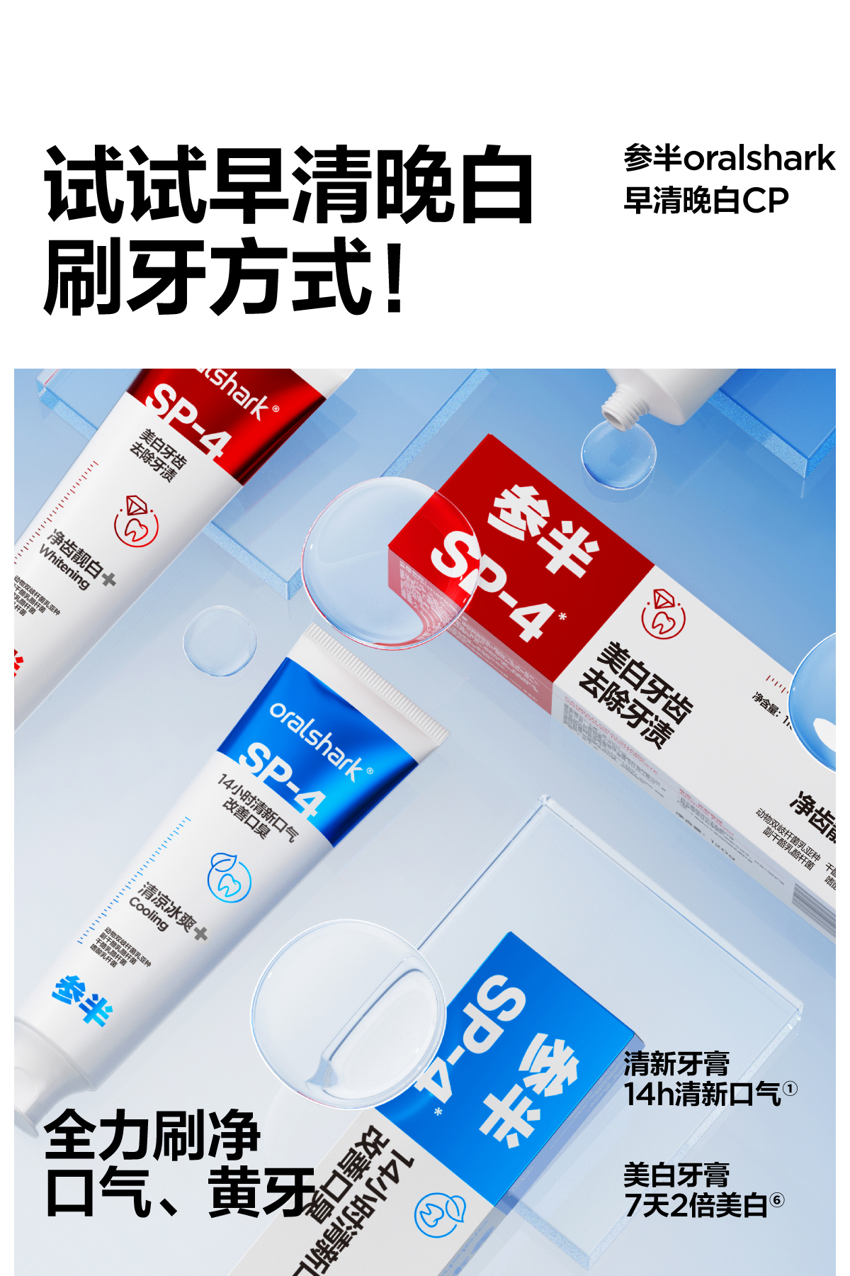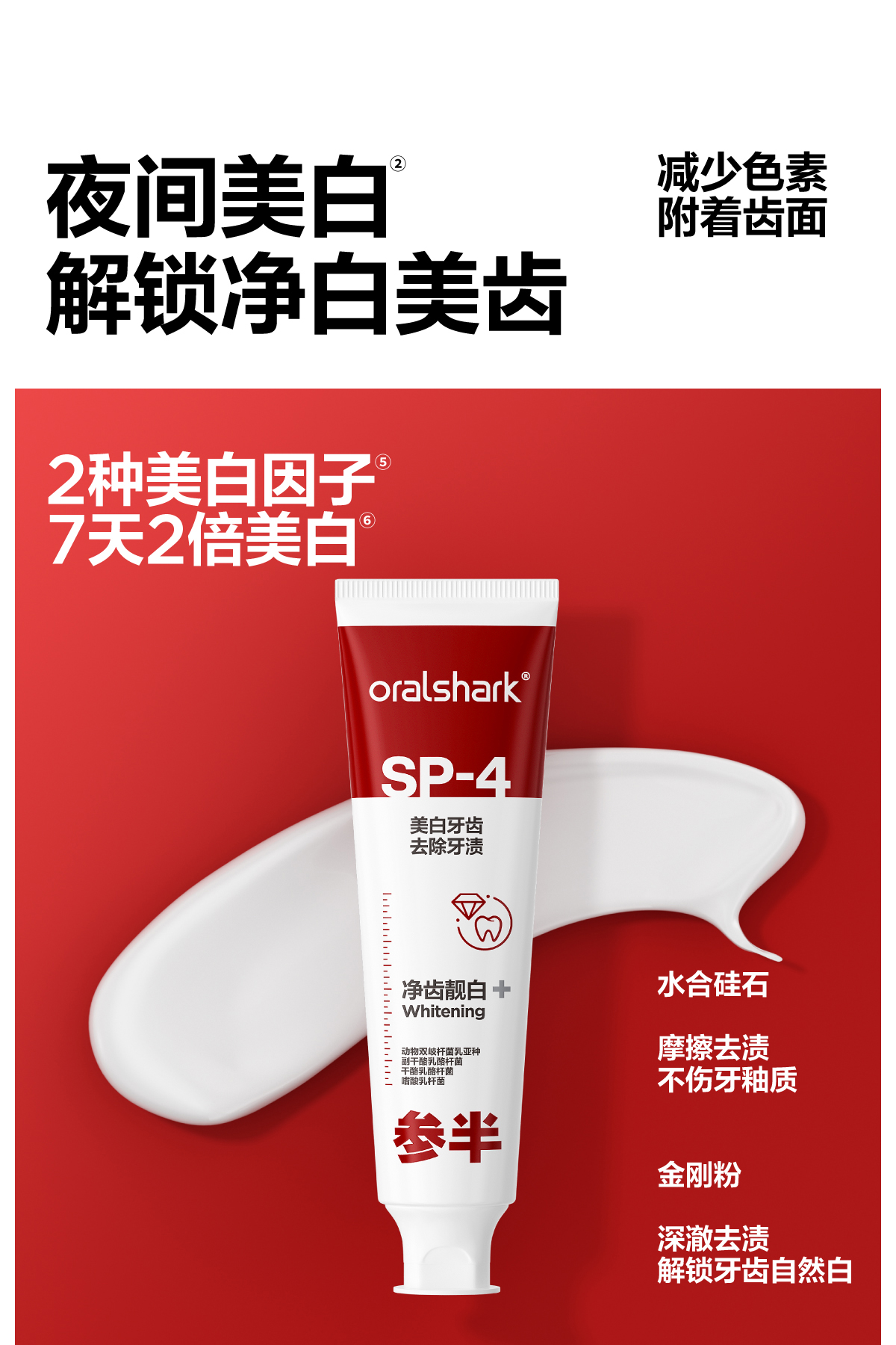 参半oralshark SP-4美白牙膏100g *3支【新老包装随机发货,如对包装有疑问可咨询在线客服】