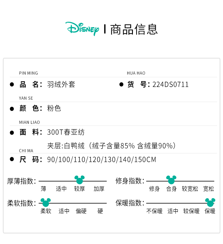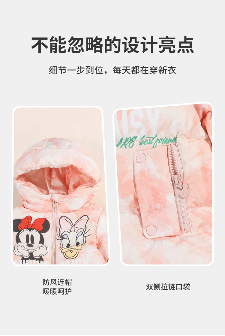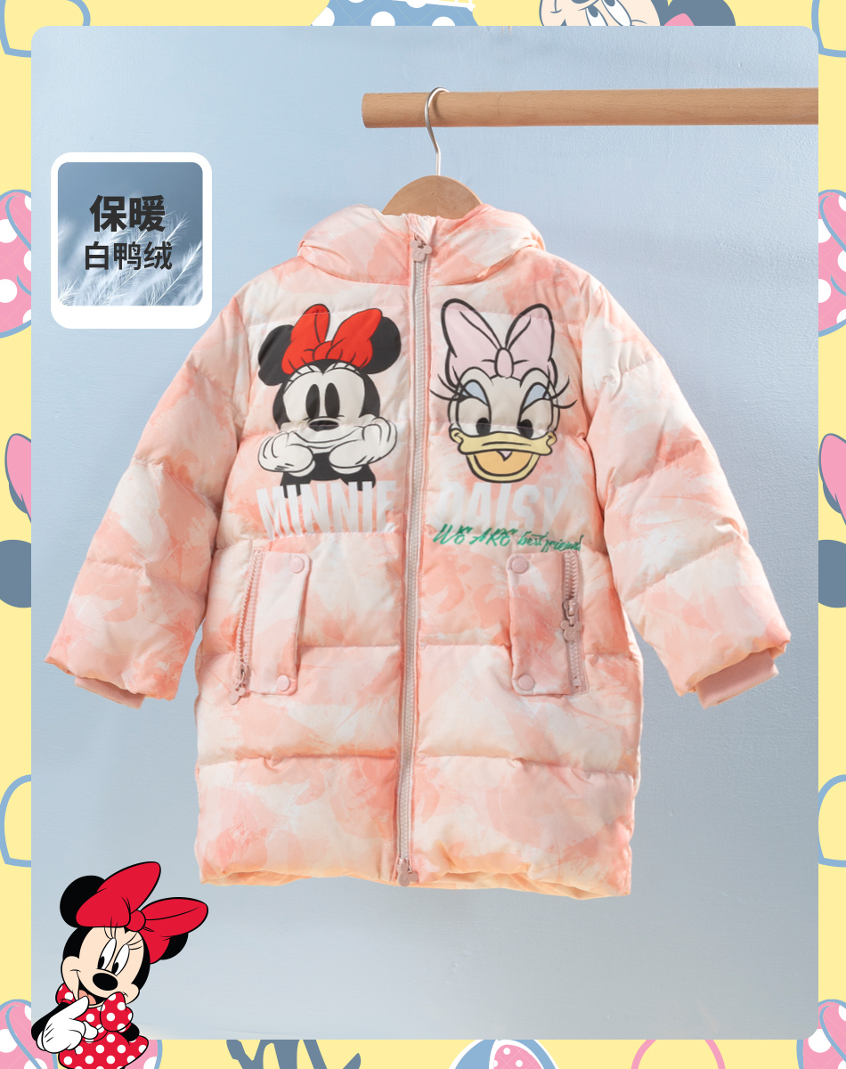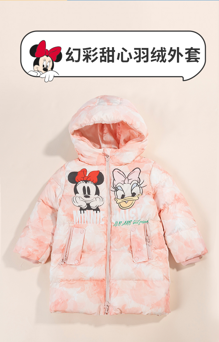 迪士尼【厚实保暖】冬季女童甜美中长款羽绒服婴幼儿防风外出服224DS0711