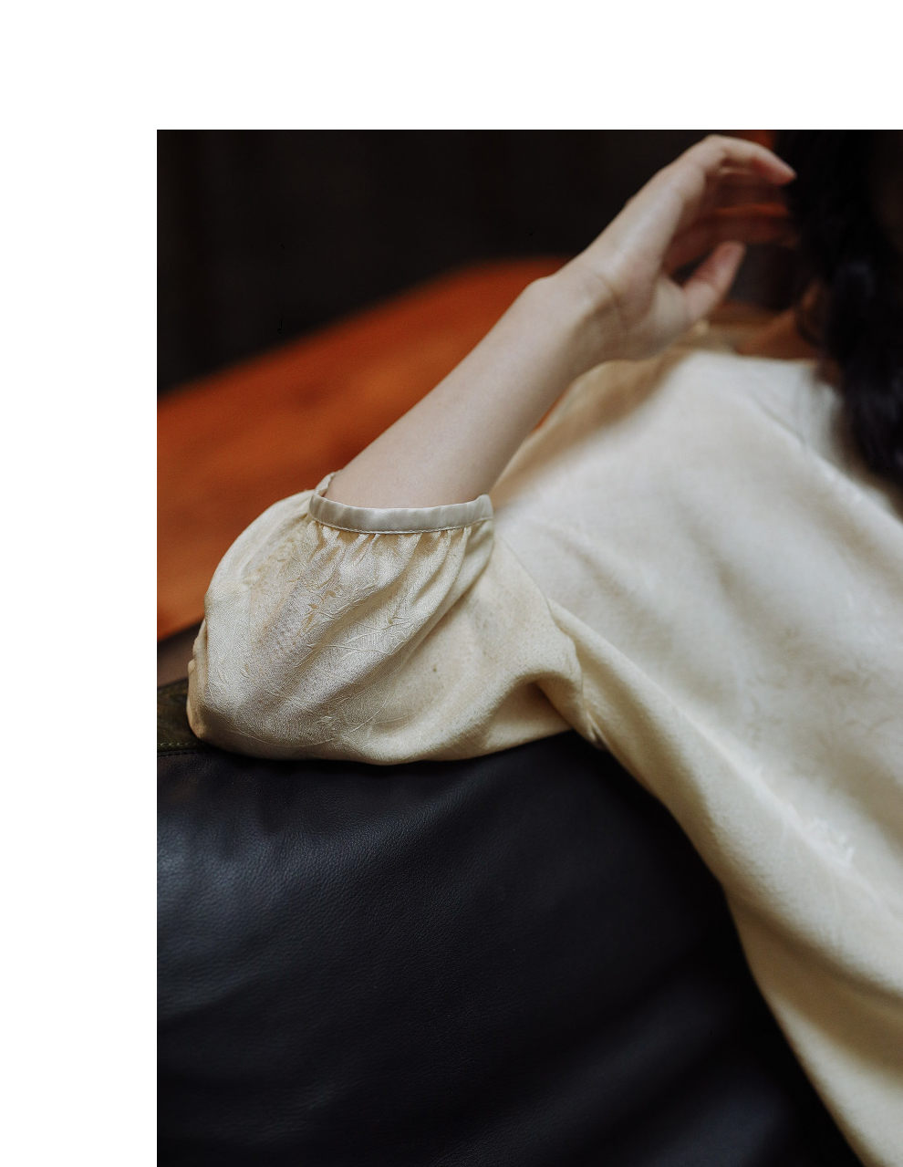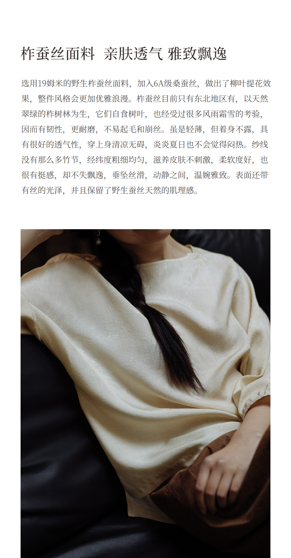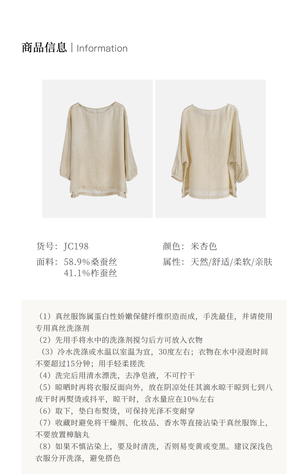 绽放198朵/真丝桑蚕丝19姆米柞蚕丝提花脏染米杏色休闲衬衫