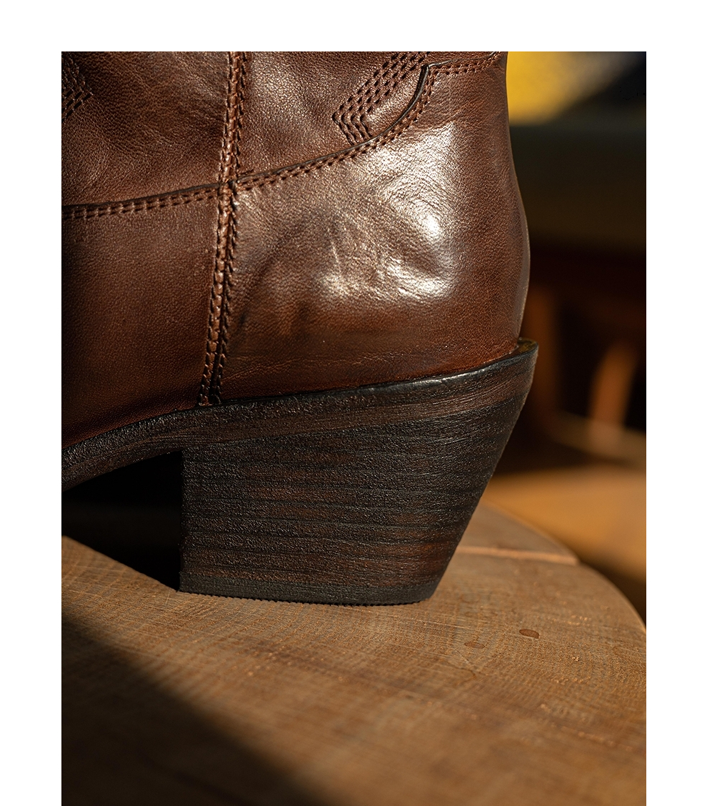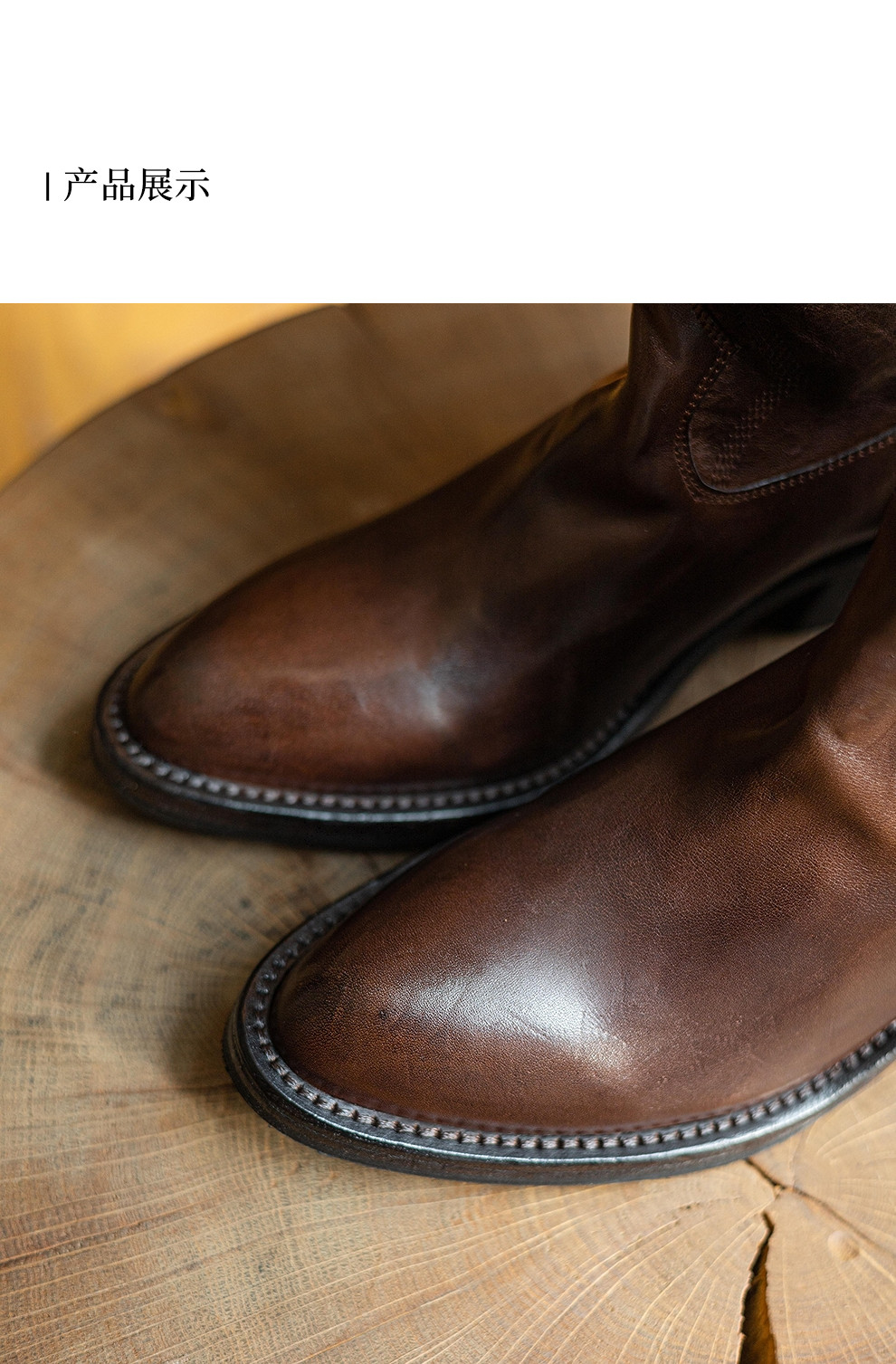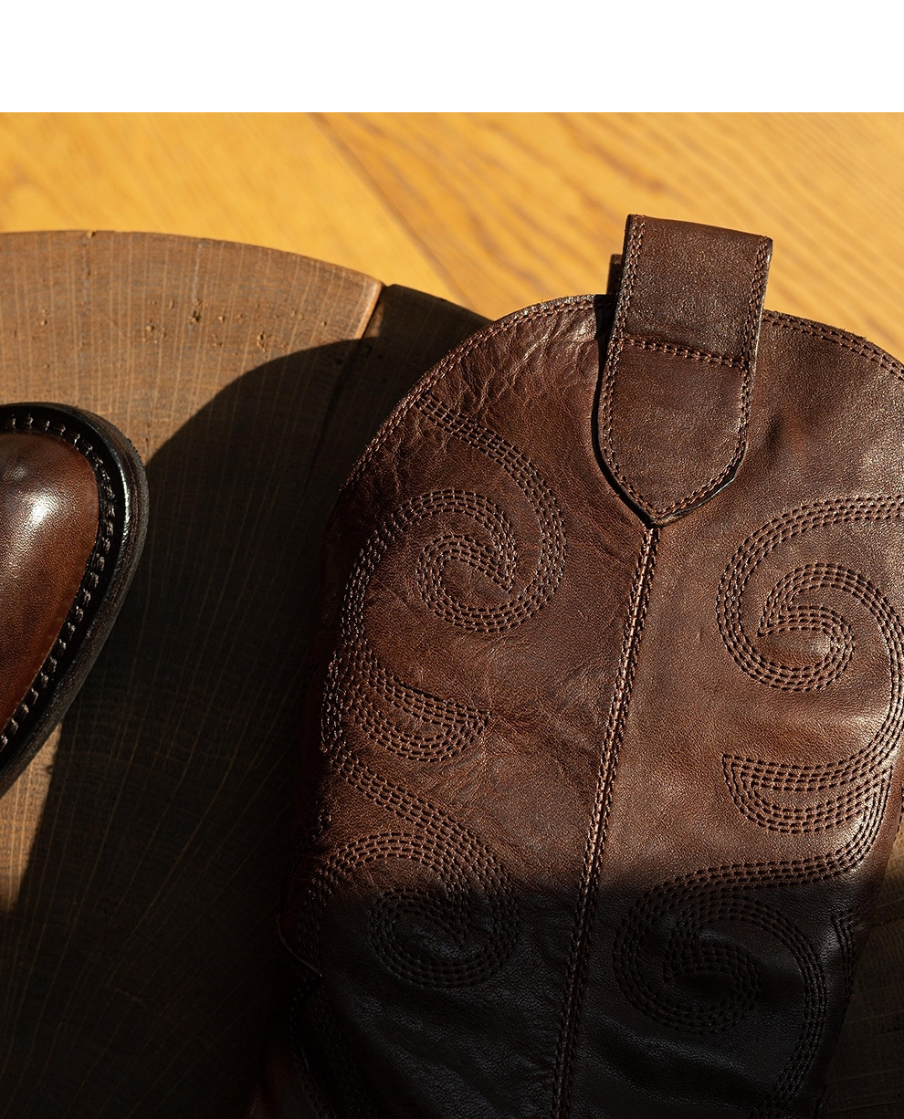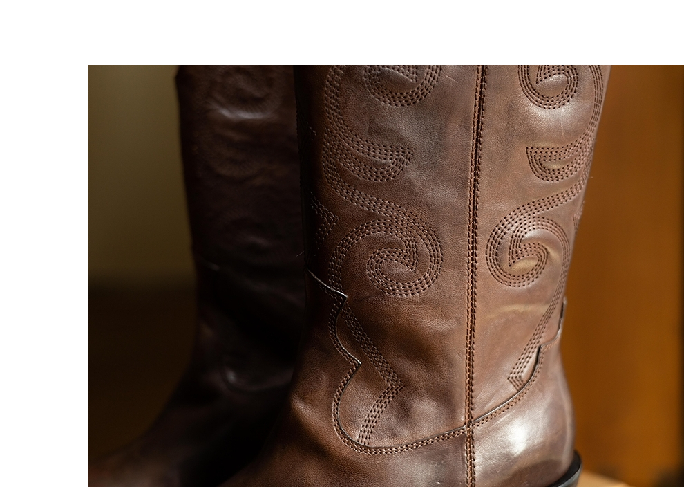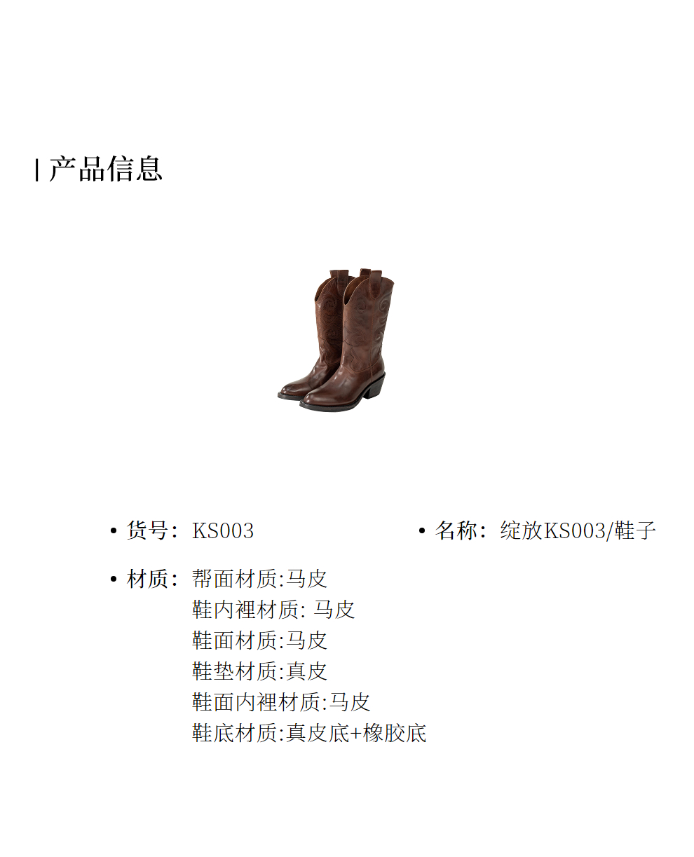 绽放KS003朵/秋冬新款重工水洗马皮牛仔靴皮靴高筒中跟复古女靴子