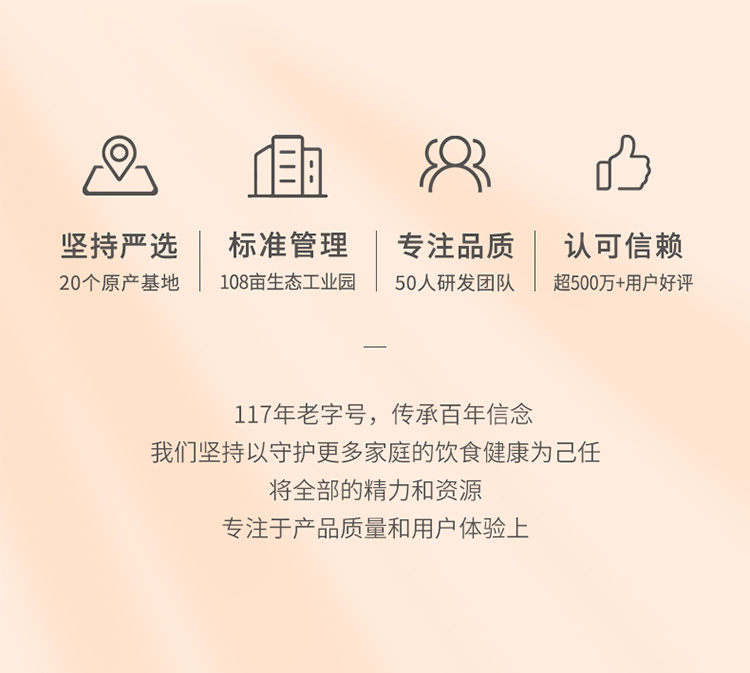 - 百年滋补品牌,五代传承,始于1906。
