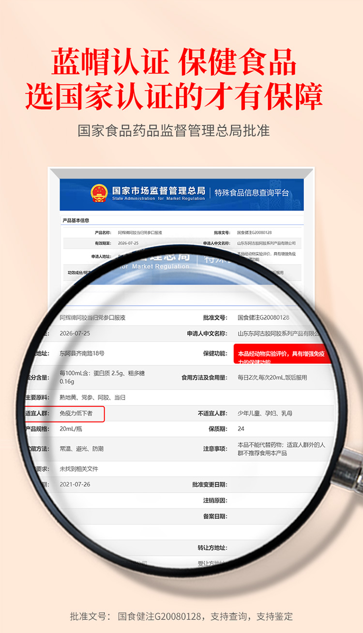 阿辉牌阿胶当归党参口服液200ml(20ml×10)×6/盒装