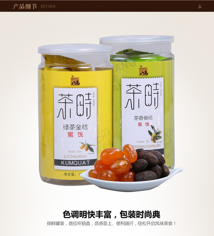 八马丨绿茶金桔 茶香橄榄 茶食茶点蜜饯 两款可选 满38元包邮