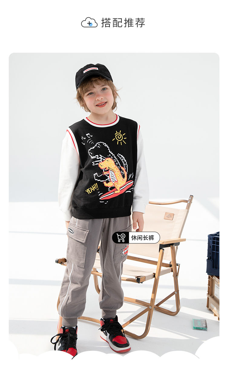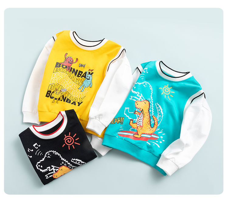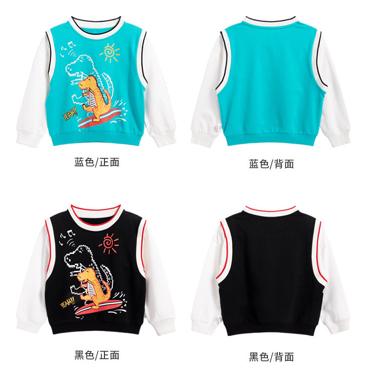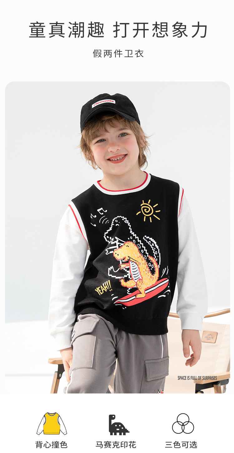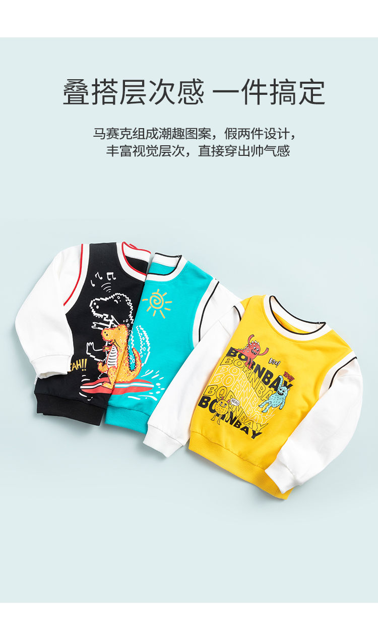 贝贝怡童装男童假两件卫衣洋气新款中大童装上衣内搭儿童潮流