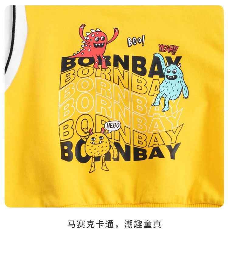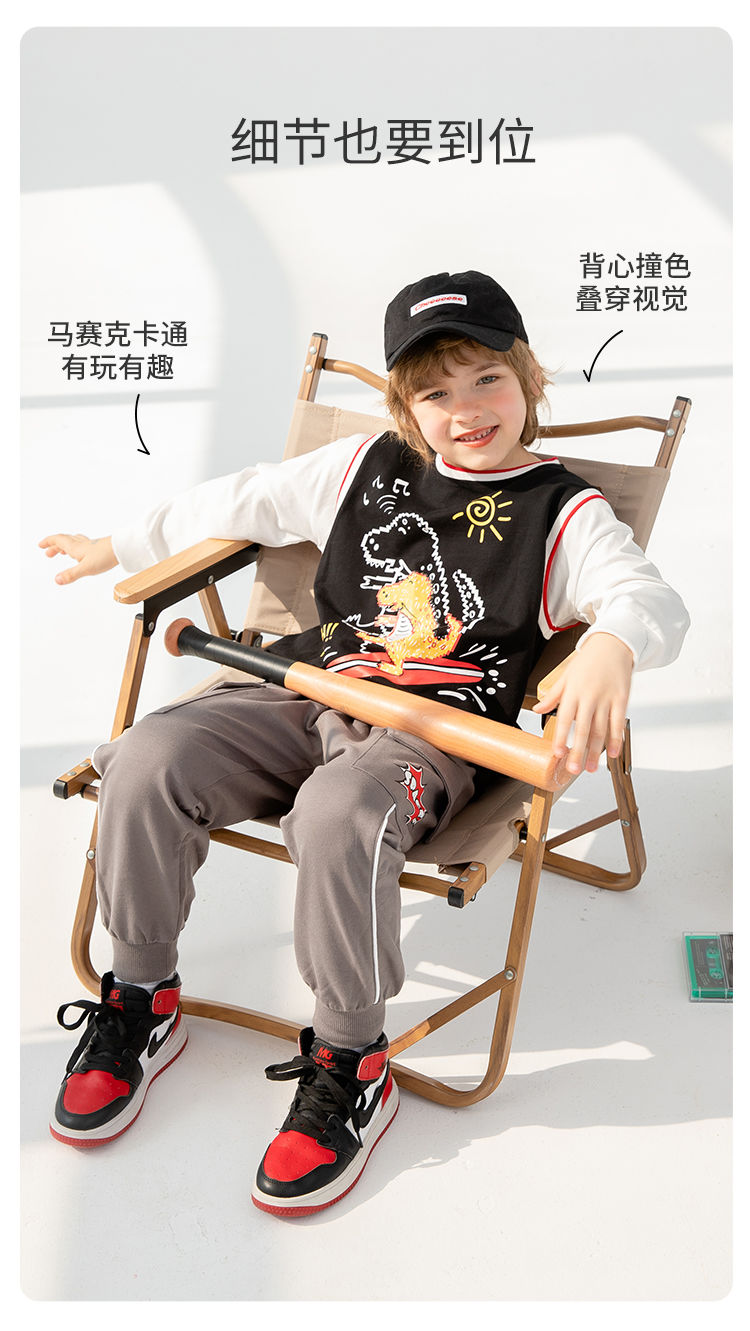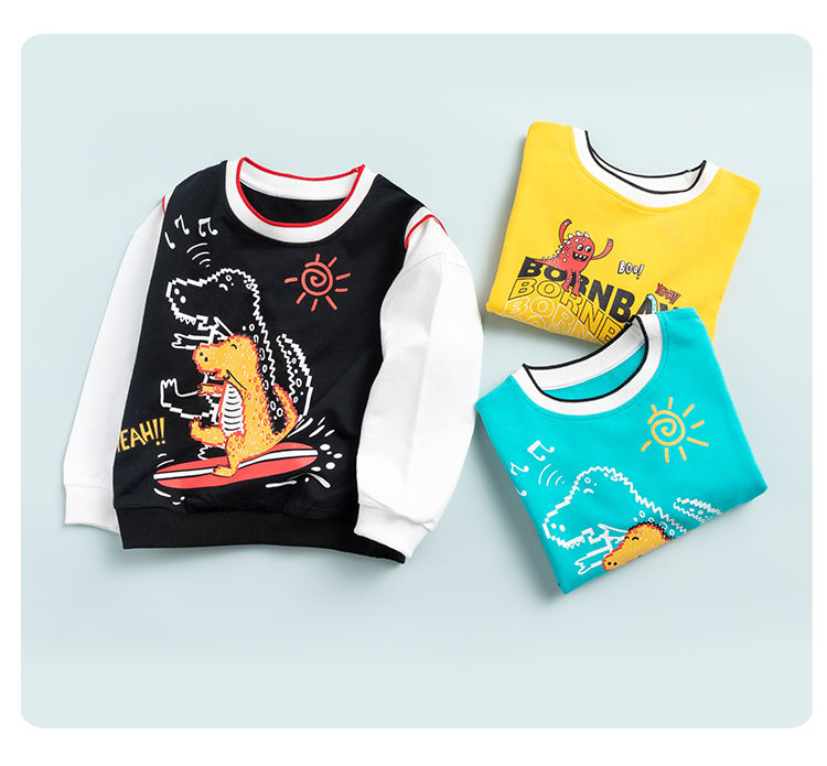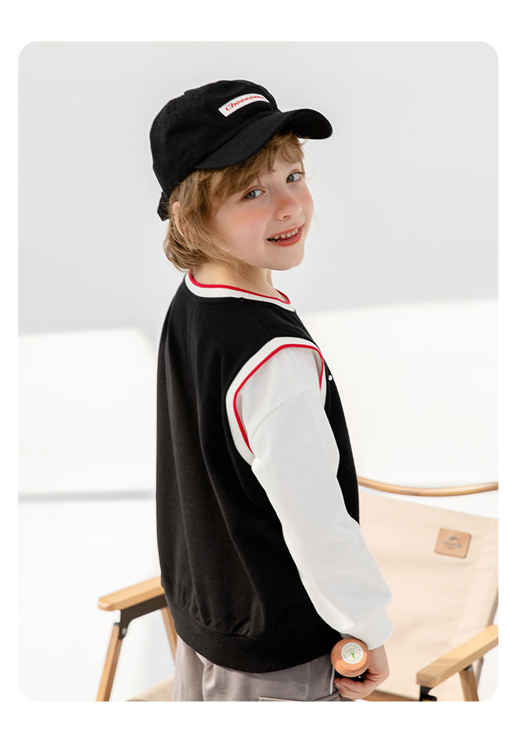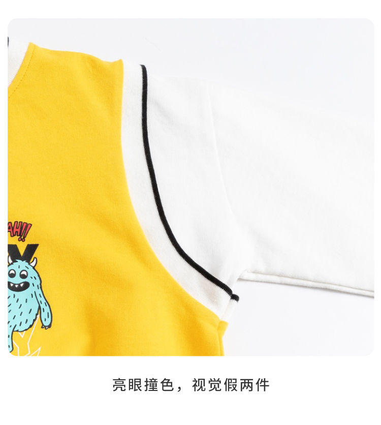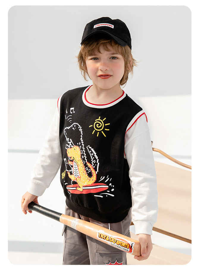 贝贝怡童装男童假两件卫衣洋气新款中大童装上衣内搭儿童潮流