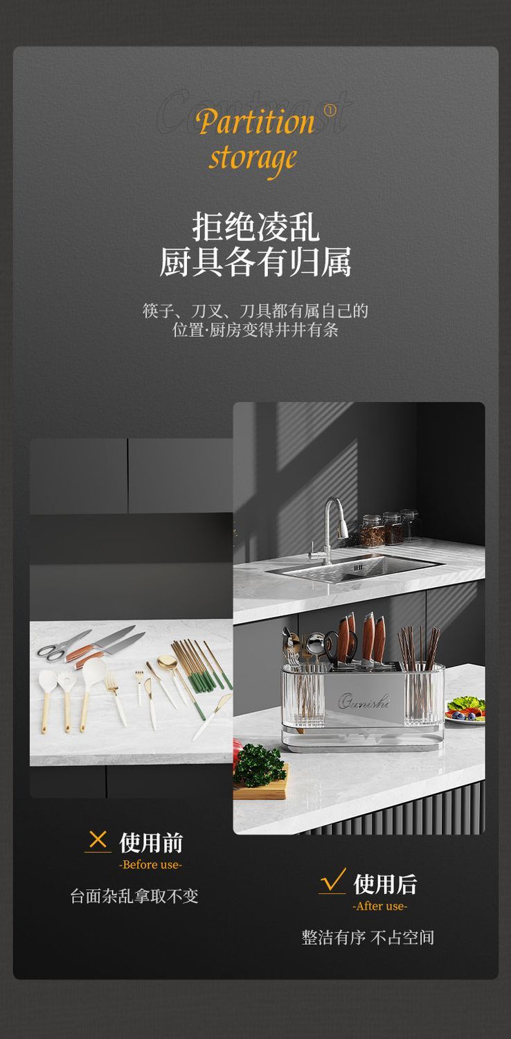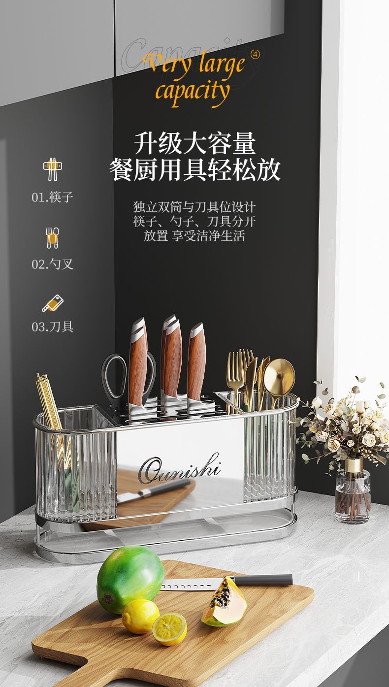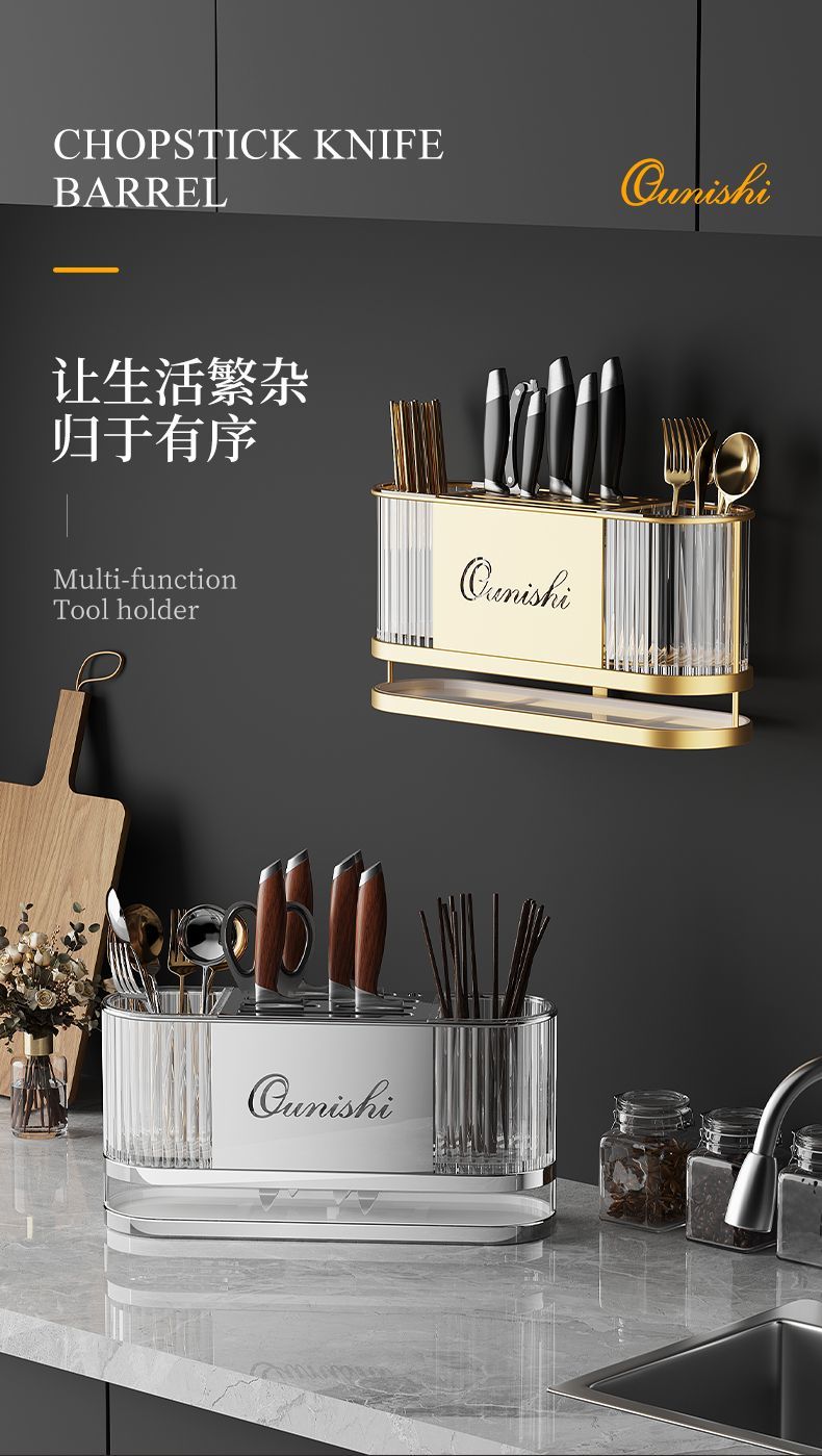 刀架厨房专用置物架不锈钢家用菜刀具台面收纳架一体架筷子筒新款