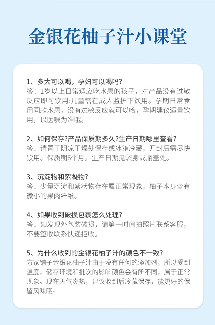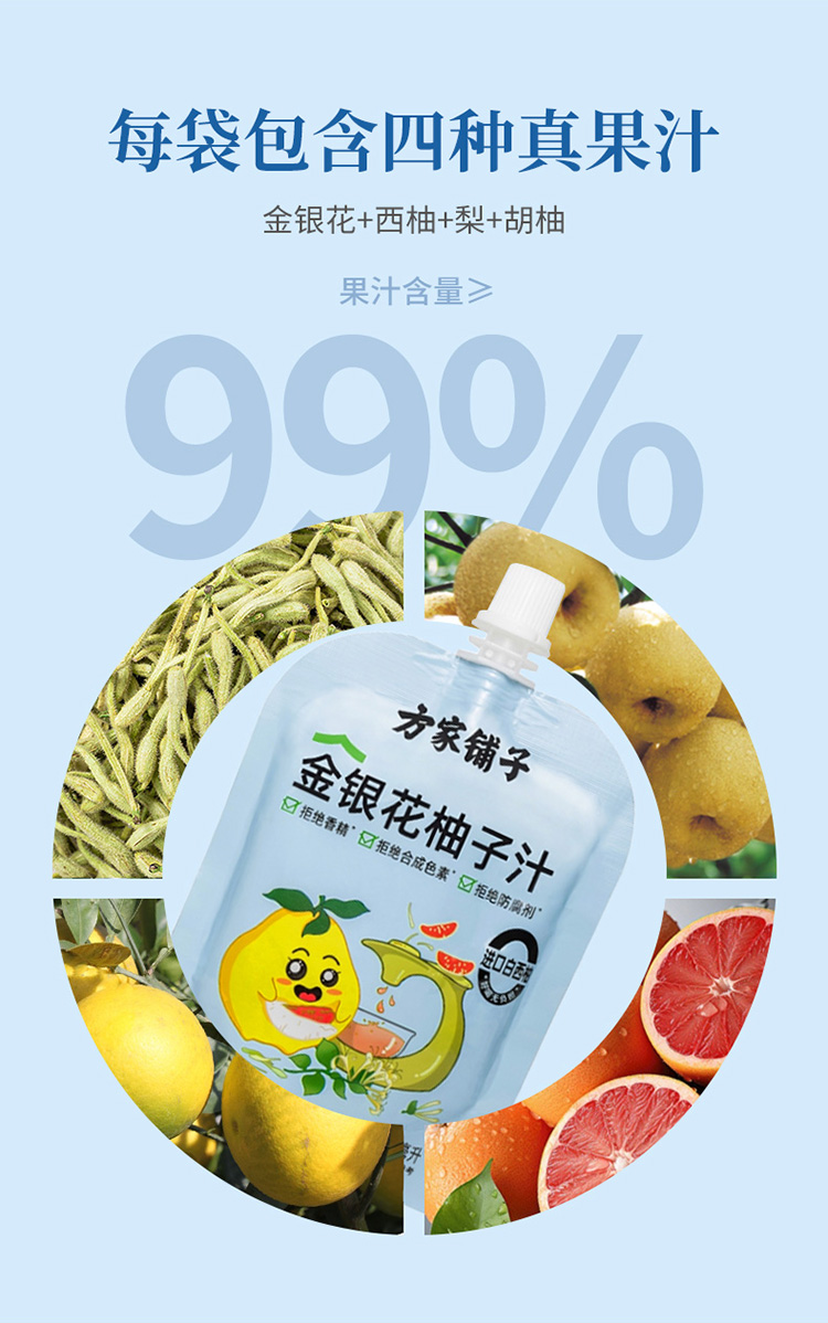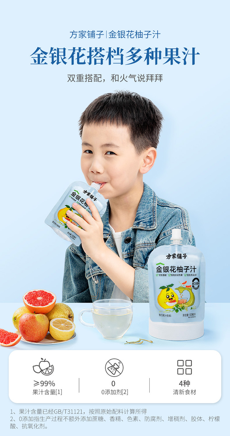 方家铺子 金银花柚子汁2L(100ml×20)/盒装