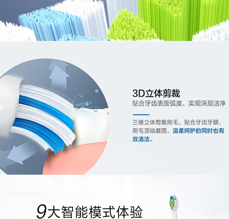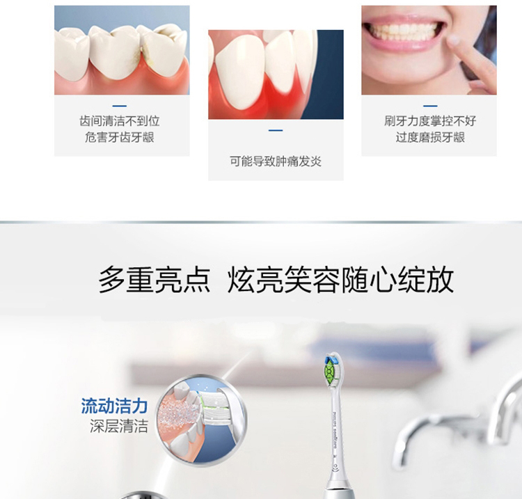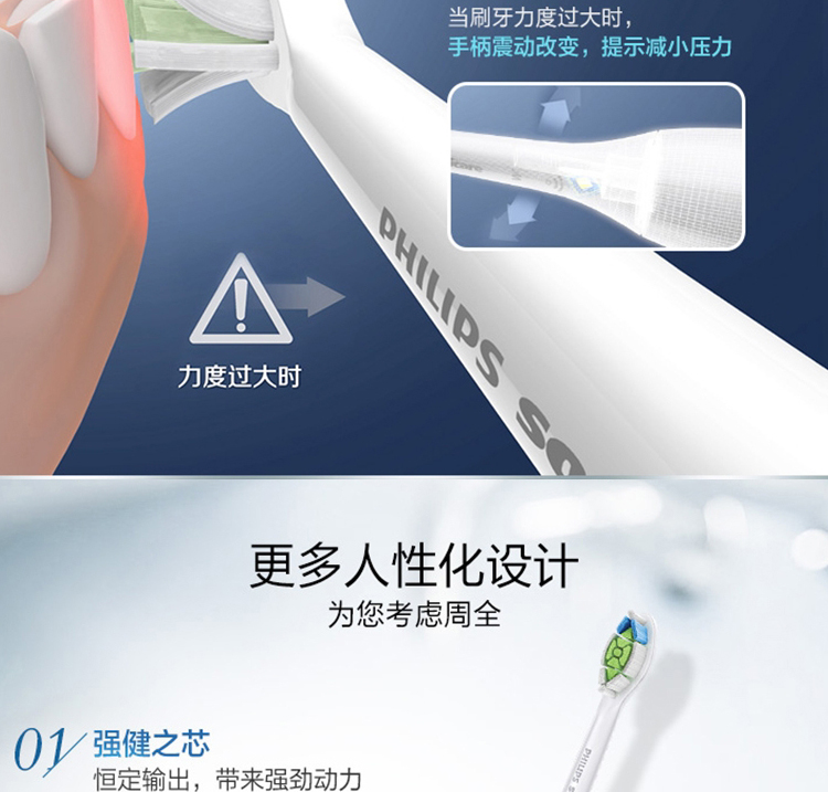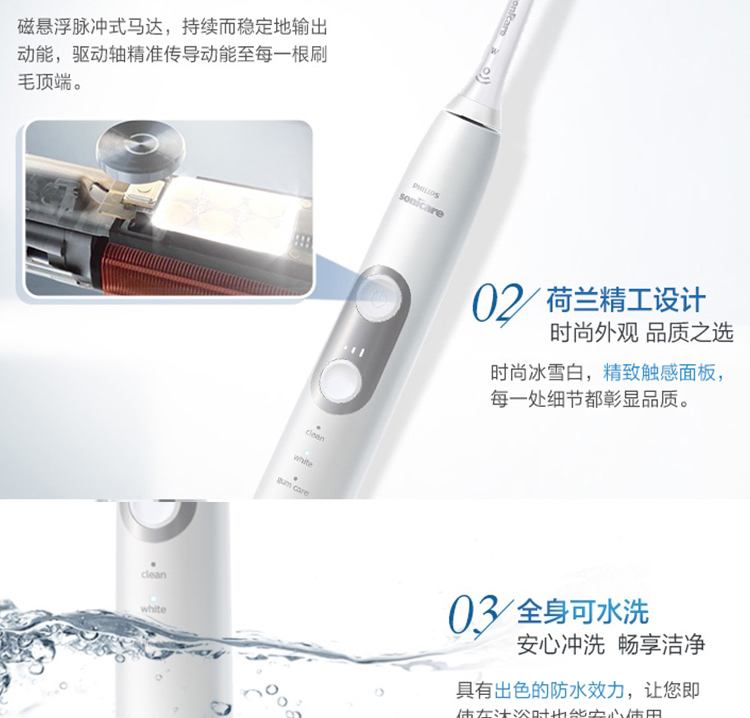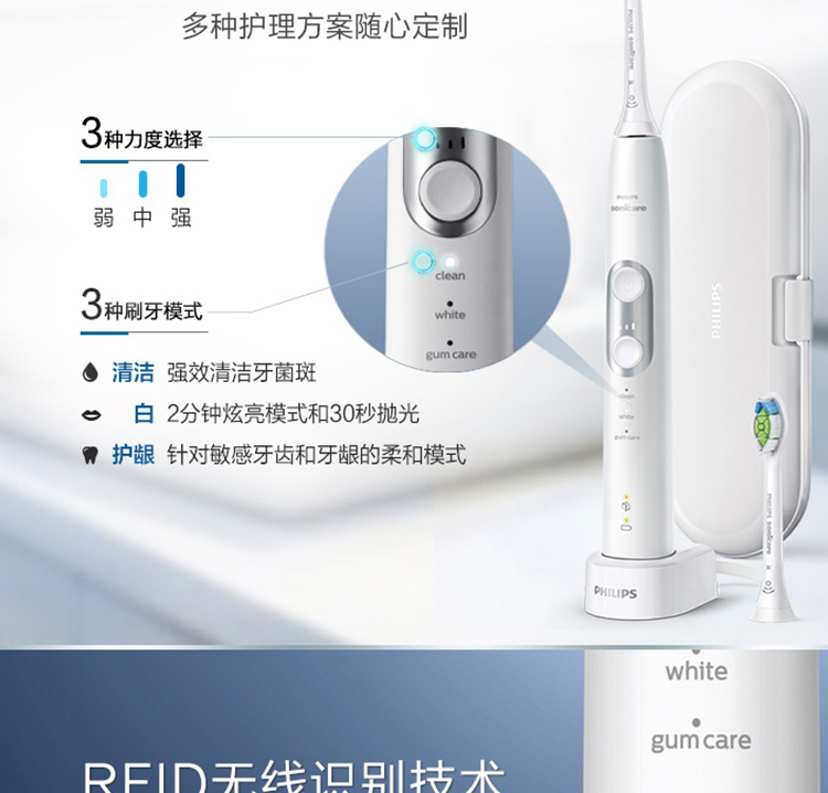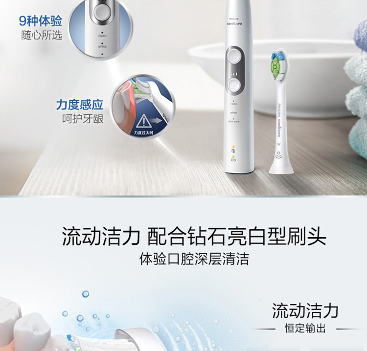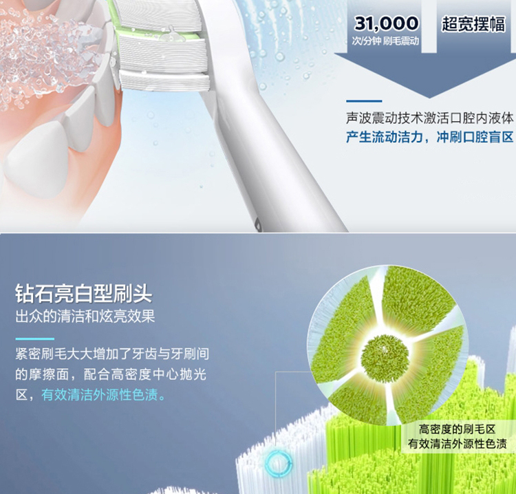 【6F】飞利浦(Philips)电动牙刷 充电式 声波震动牙刷 智能计时 净透焕白型牙刷 HX6877