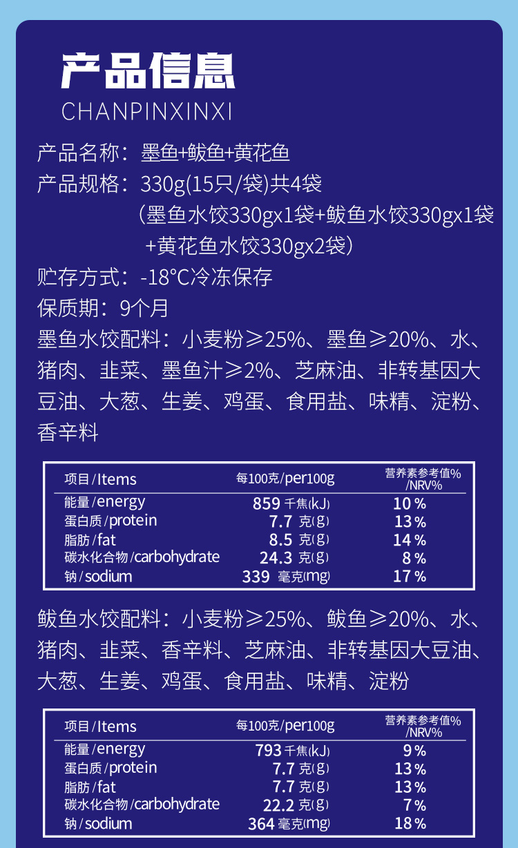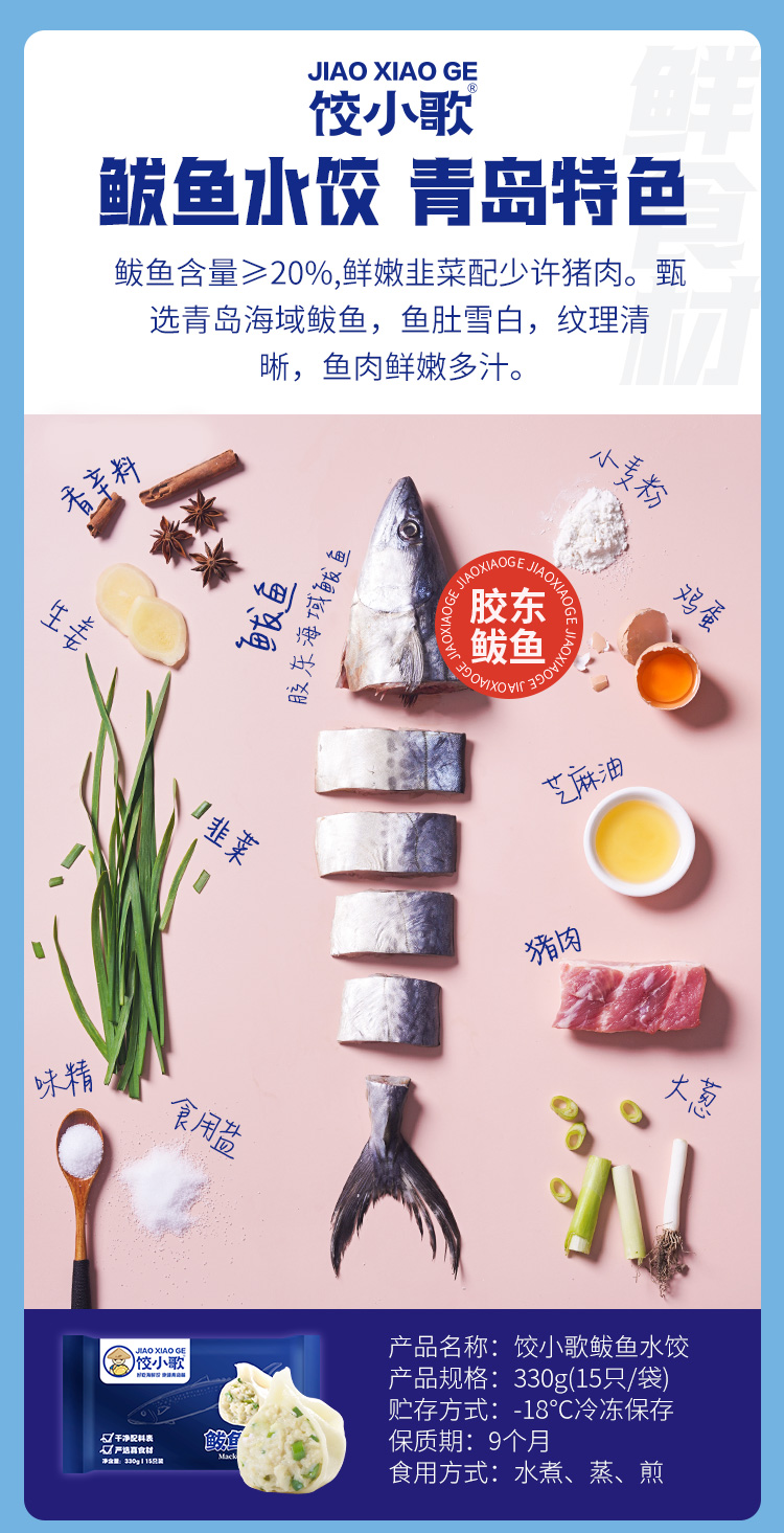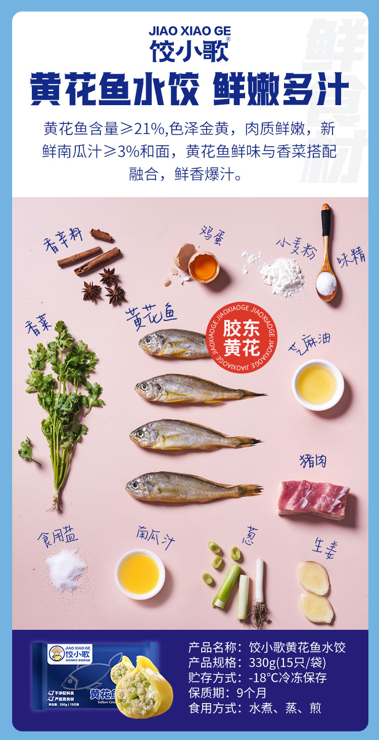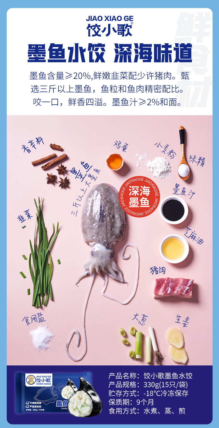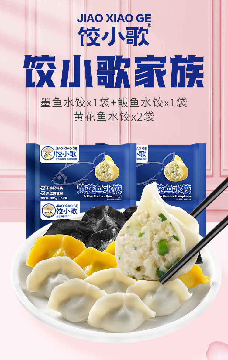 饺小歌海鲜水饺多口味组合装330g*4袋墨鱼鲅鱼黄花鱼鳕鱼