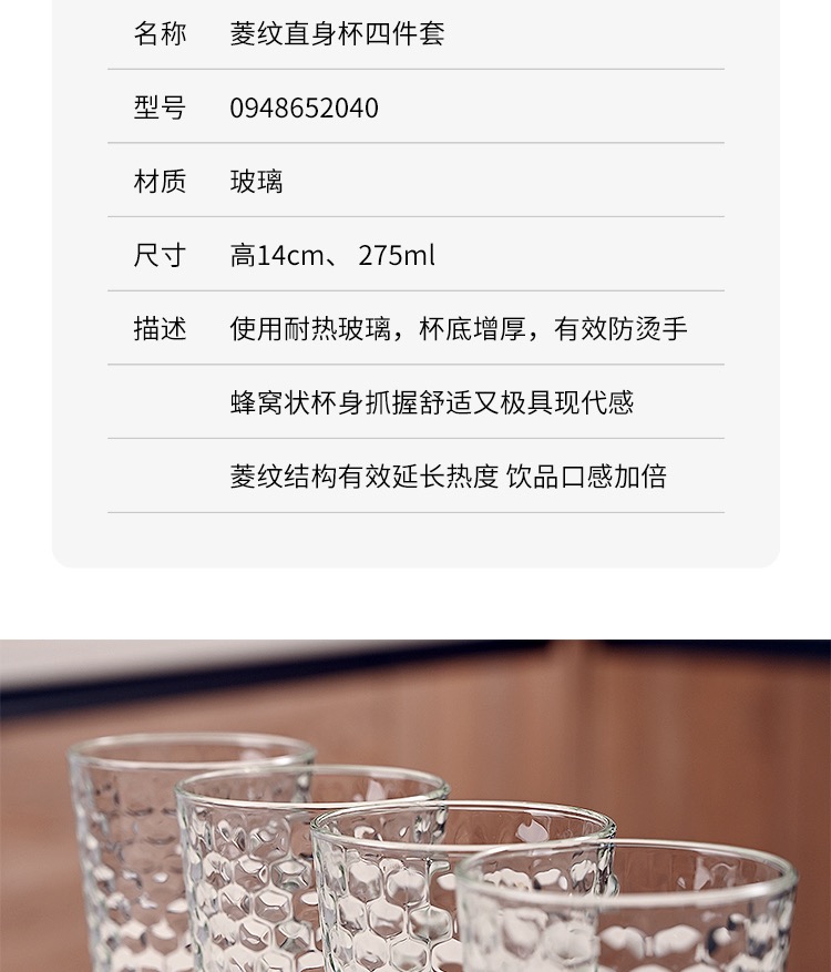 【6F】WMF 原装进口菱纹直身杯四件套