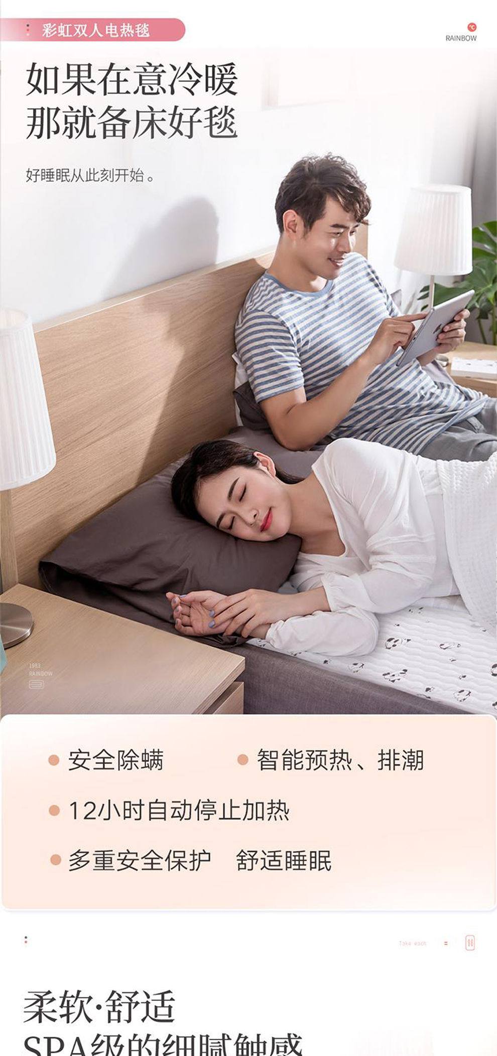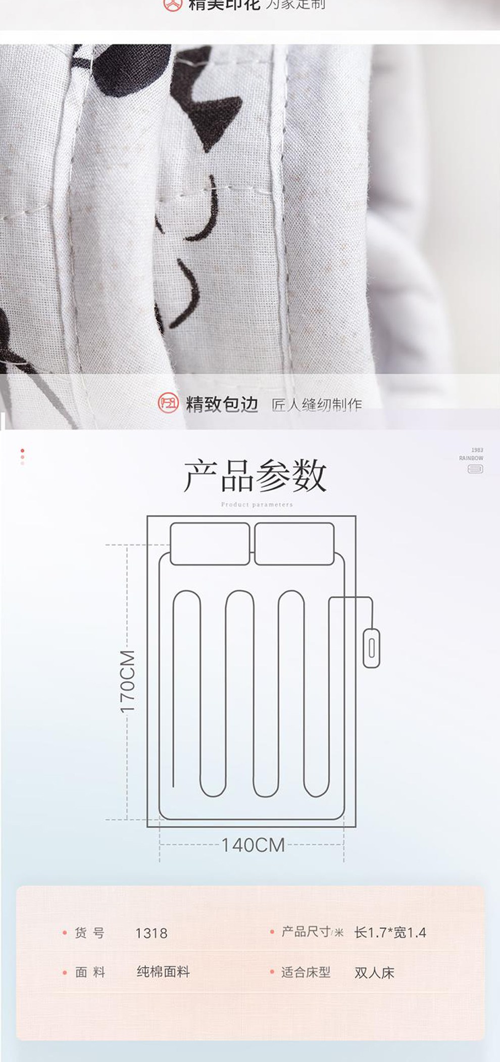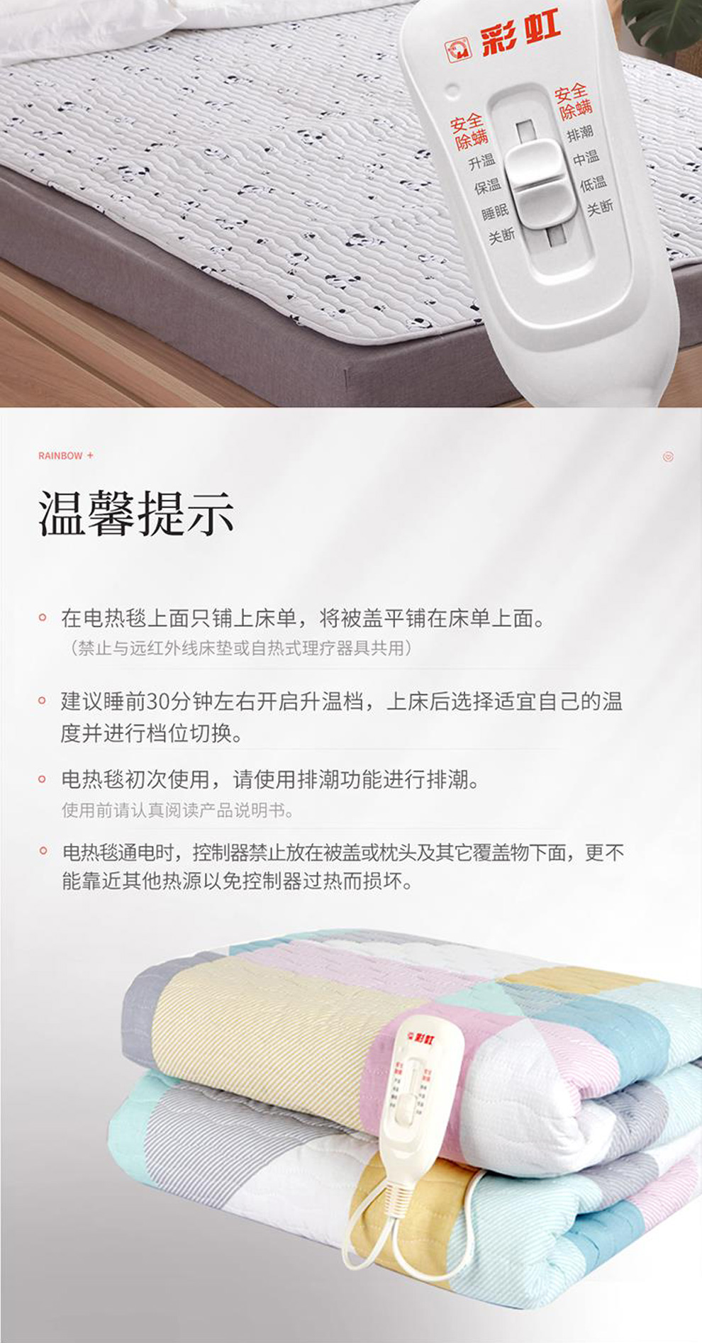 彩虹电热毯(长1.70米*宽1.40米)调温电热毯(双人单面纯棉)1318【花色随机】