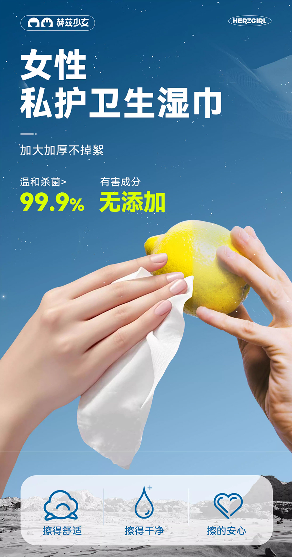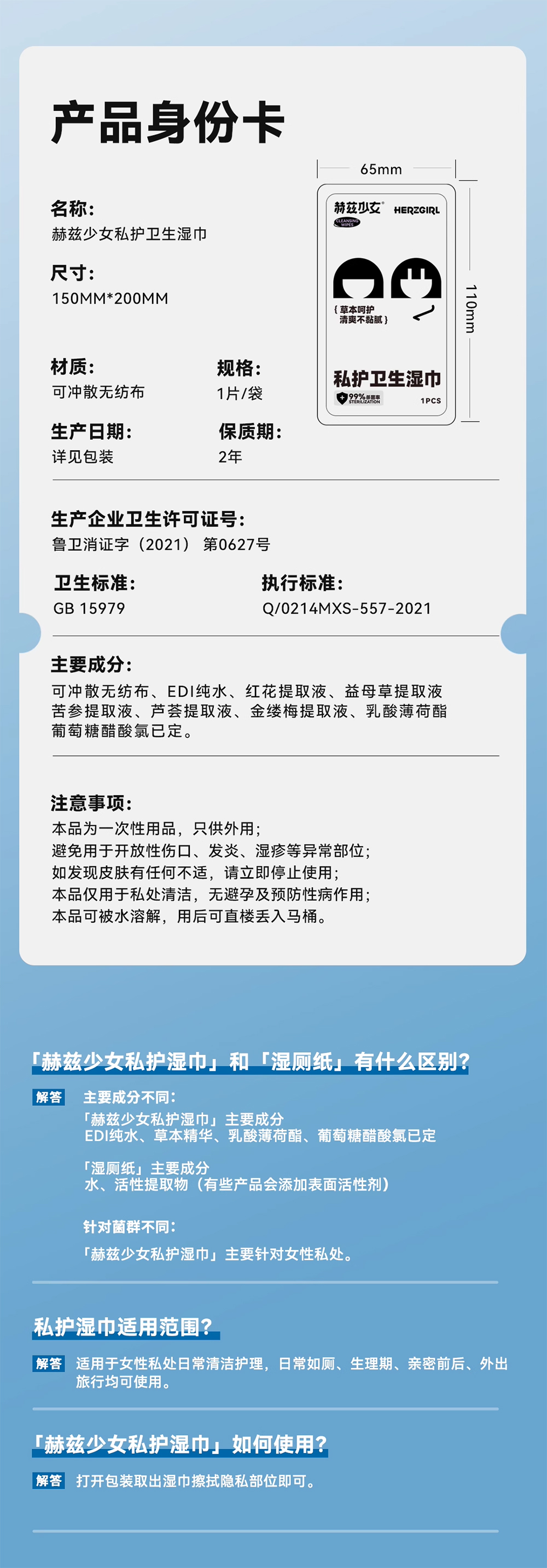 【私护湿巾】赫兹少女私处卫生湿巾纸私密护理专用厕纸清洁房事可擦湿纸巾正品