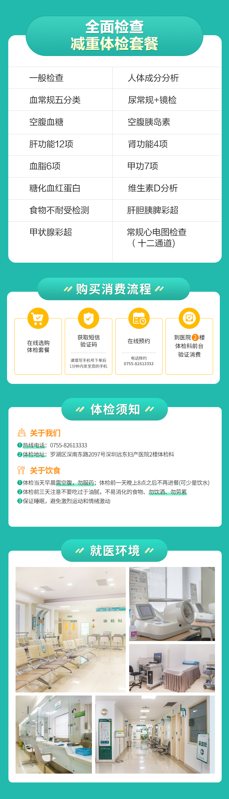 【全面检查】肥胖减重体检套餐 (人体成分分析、血常规、尿常规、肝功能、肾功能、彩超、心电图等)-远东罗湖院区-体检科