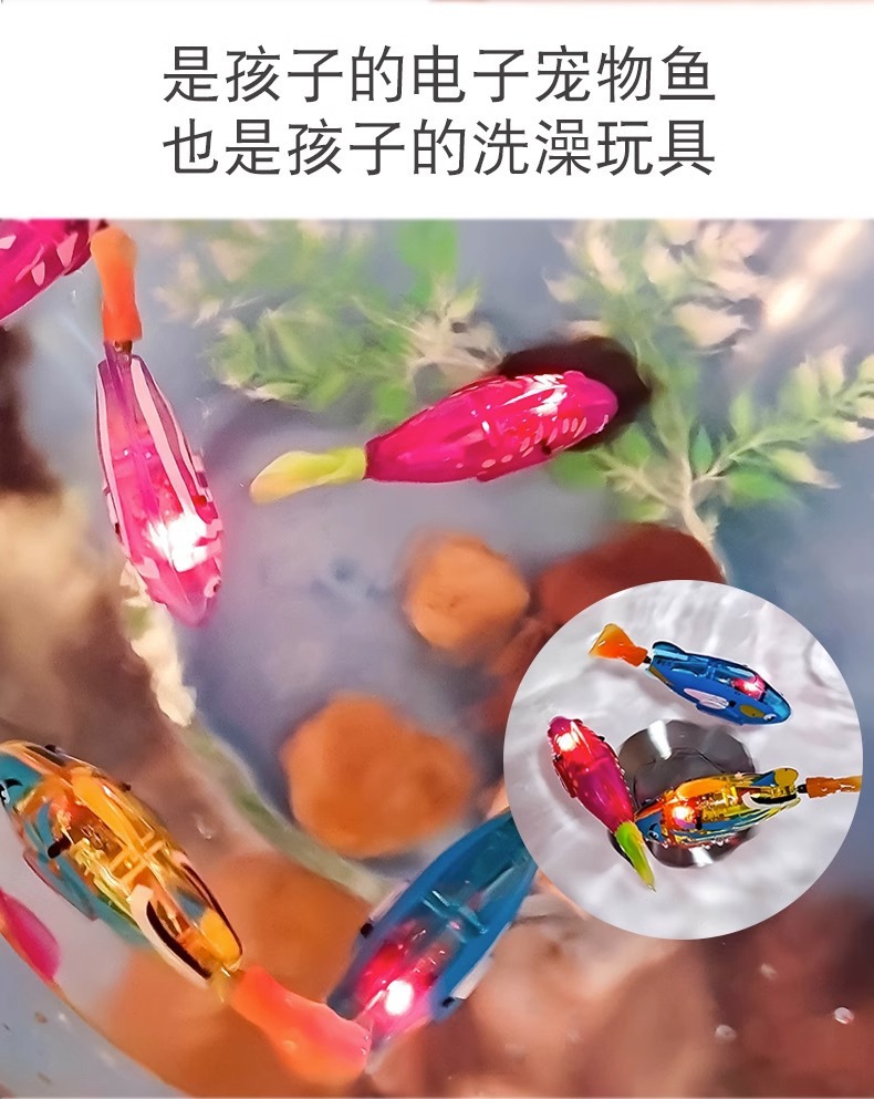 【遇水即“活” 发光电动仿真鱼】宠物玩具发光电动游泳鱼戏水玩具电子宠物鱼机器鱼婴幼儿洗澡玩具