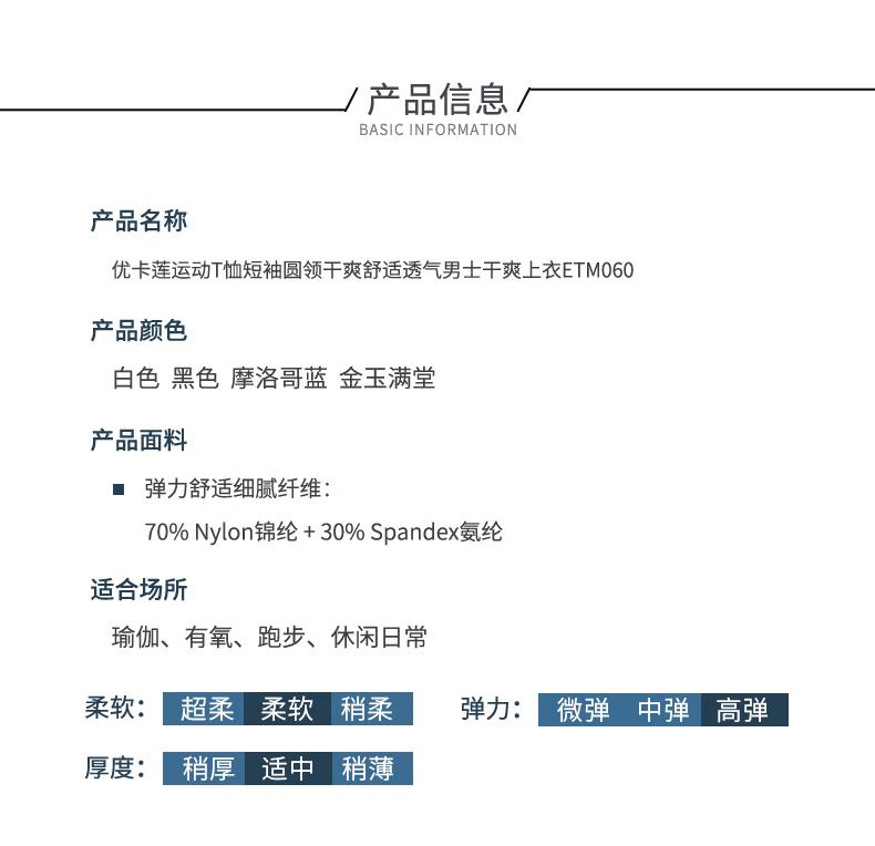 优卡莲ETM060运动t恤短袖圆领干爽舒适透气男士干爽上衣