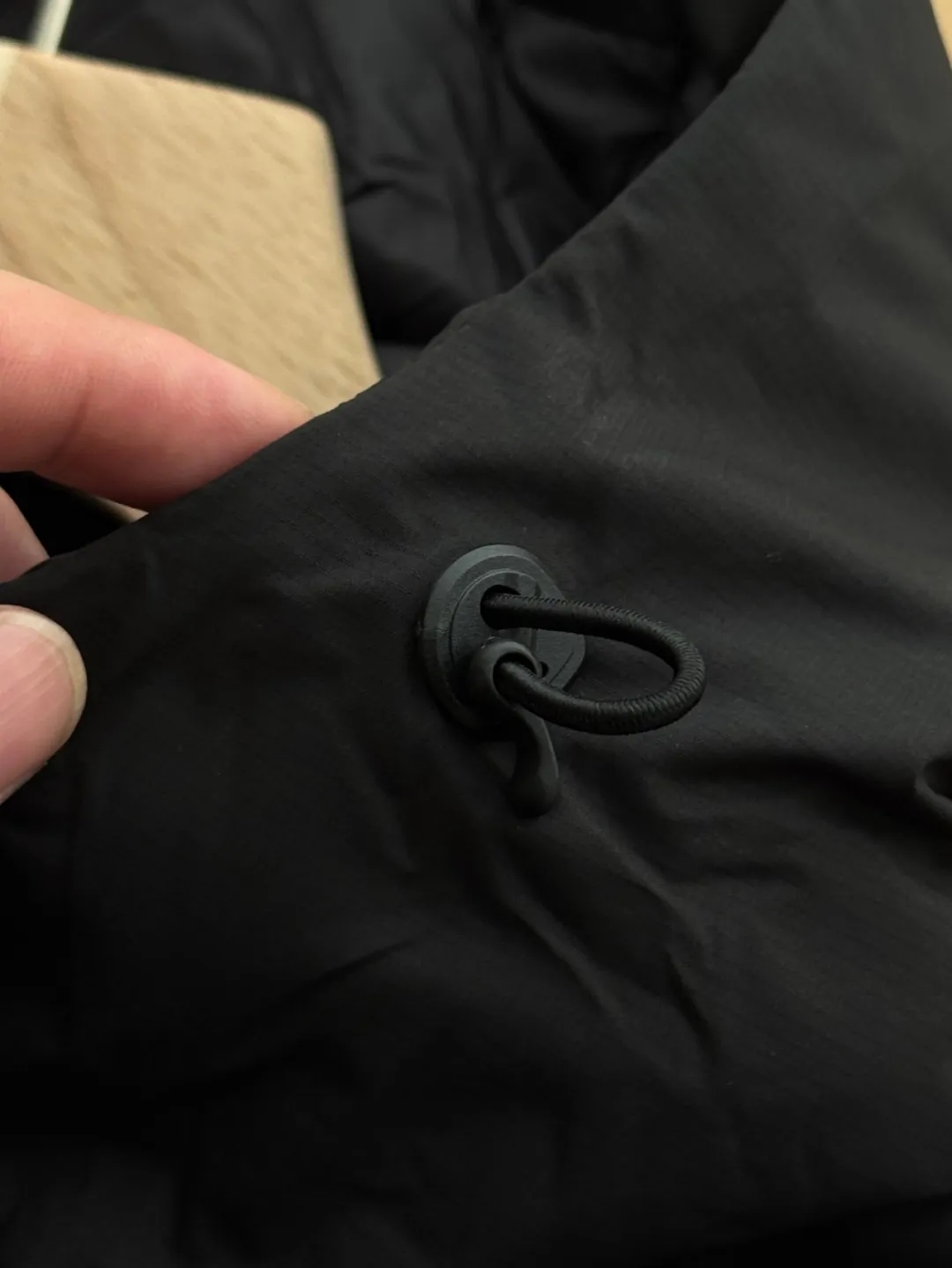 ⑦额外设有收纳袋,易于打包收纳保管 功能性 - 防泼水--防止水侵湿面料,将水快速弹落 防风--防止风进入服装内部 面料功能性-PERTEX QUANTUM采用高密度紧密编织结构,轻量 柔软的同时,能通过尽可能地隔绝空气提高保温性能