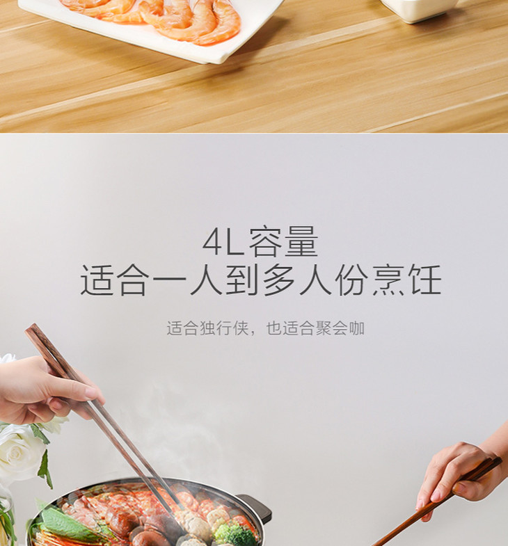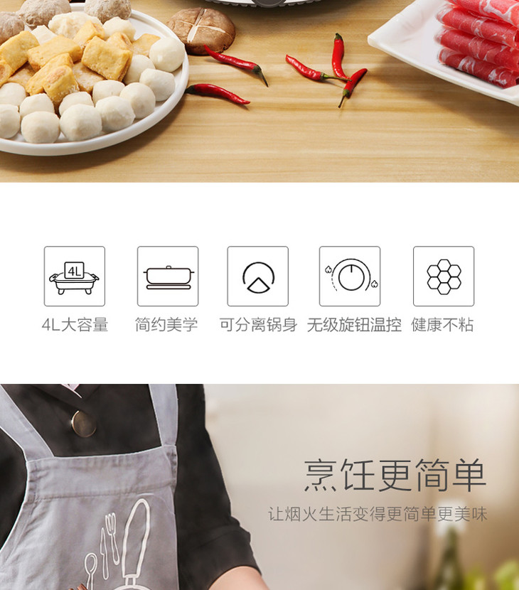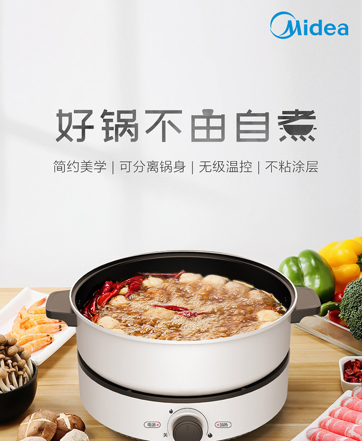 多功能电煮电热锅 家用多用途4L 大容量 电火锅 煎烤电炒锅 分体不粘锅MC-DY26Easy501 美的(Midea)