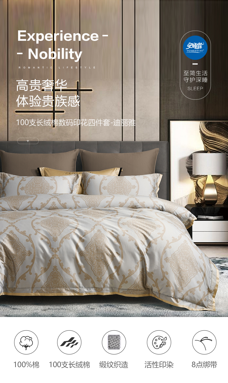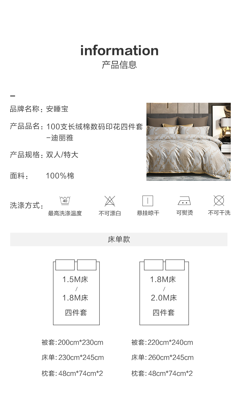 【春上新】10楼 安睡宝 100支长绒棉数码印花四件套-迪丽雅 吊牌价4999-5299元 活动价1999-2199元
