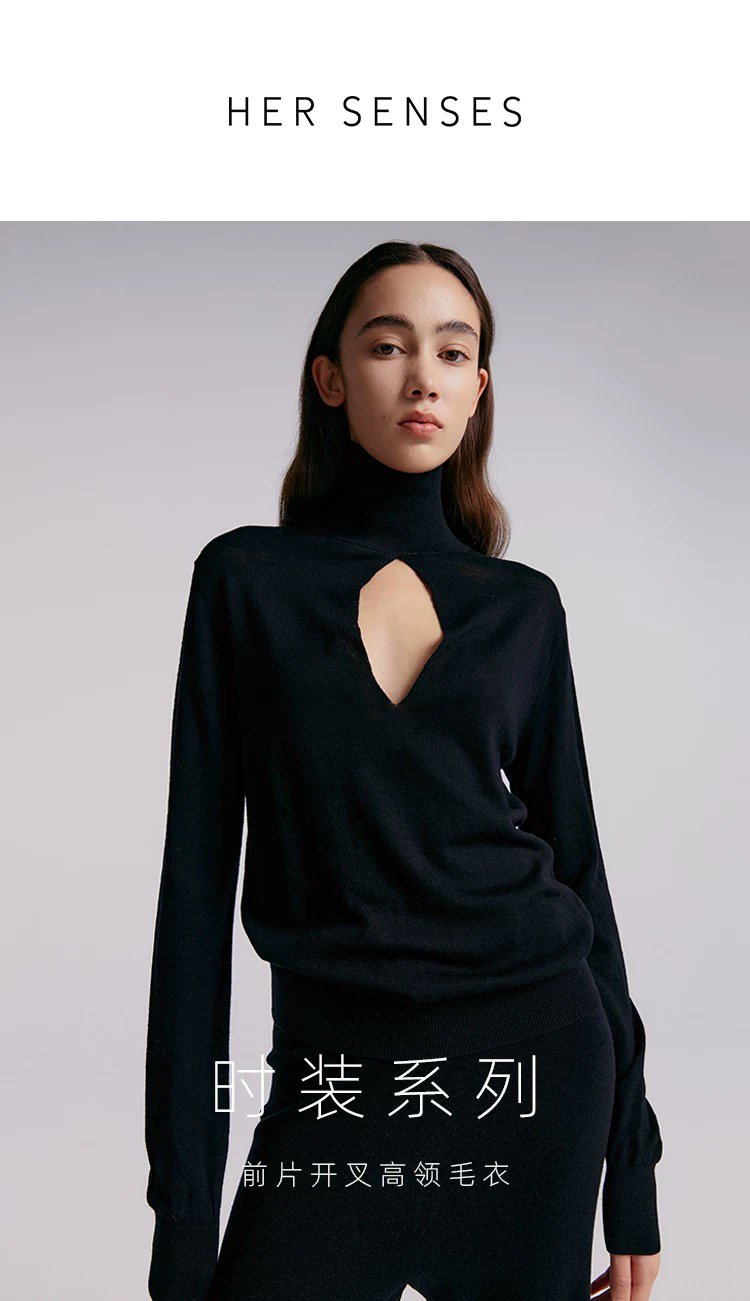 Her Senses|时装 12WPO25K1 前片开叉高领毛衣 [ 黑BK01 / 茶灰GY18 ]
